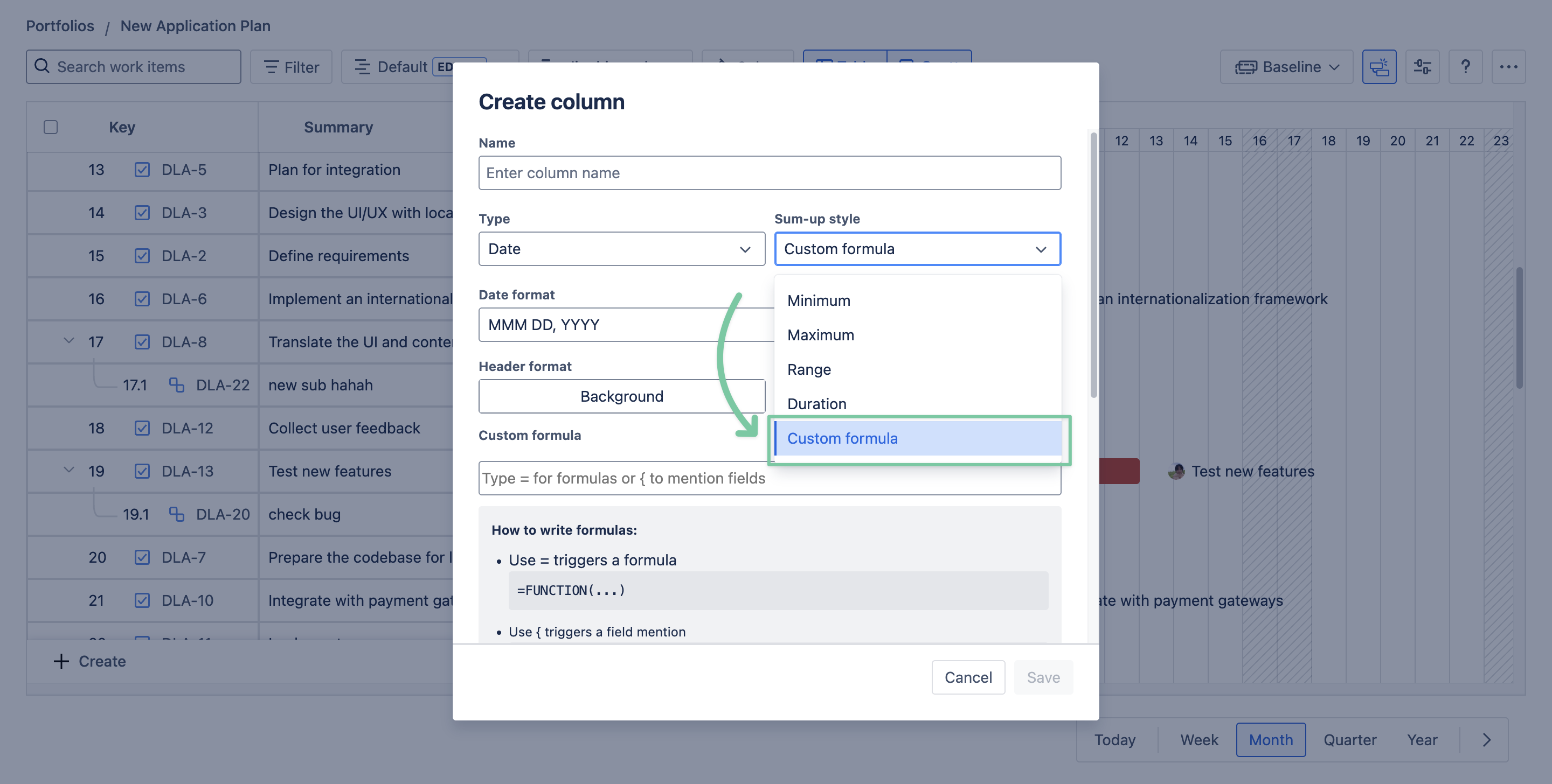 The Custom Formula allows you to create custom values without having to create custom work item fields in your Jira instance.