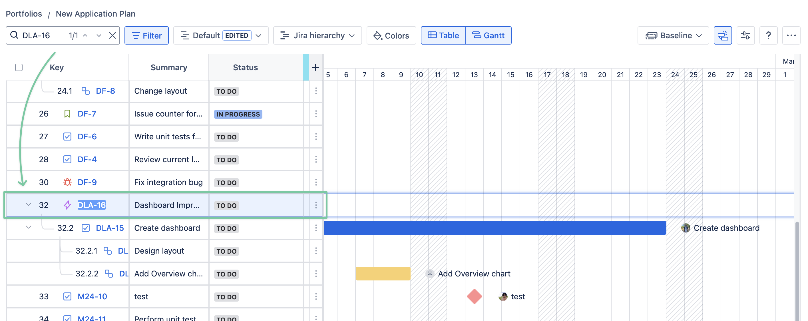 By default, the GanttTable uses the Jira hierarchy structure.