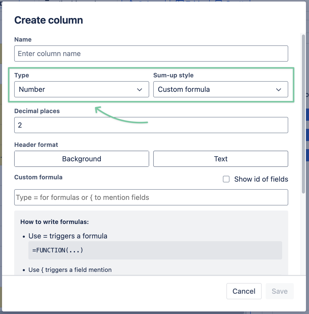 To use this feature, select Custom formula when choosing the Sum-up style for your Smart column.
