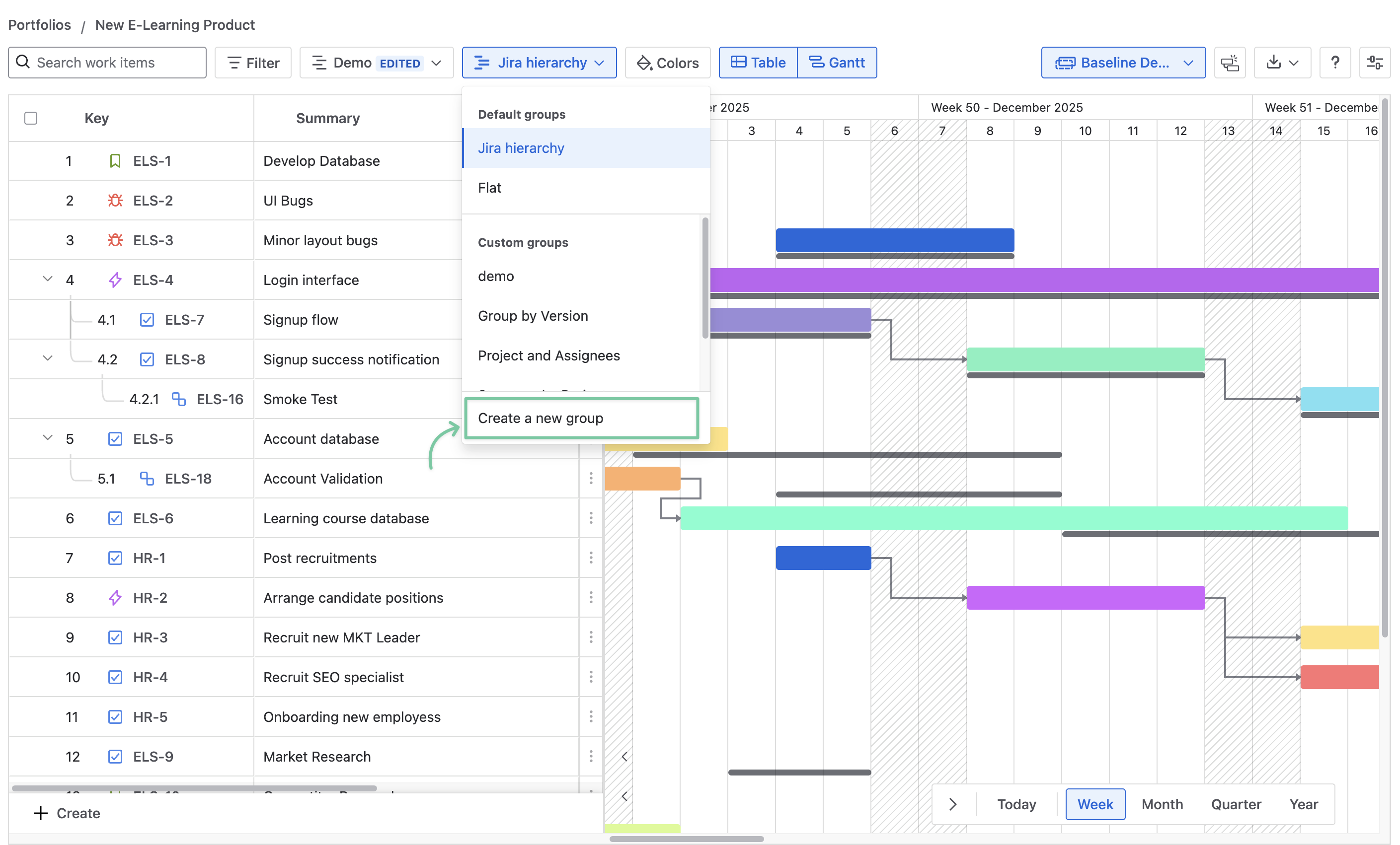 By default, the GanttTable uses the Jira hierarchy group.