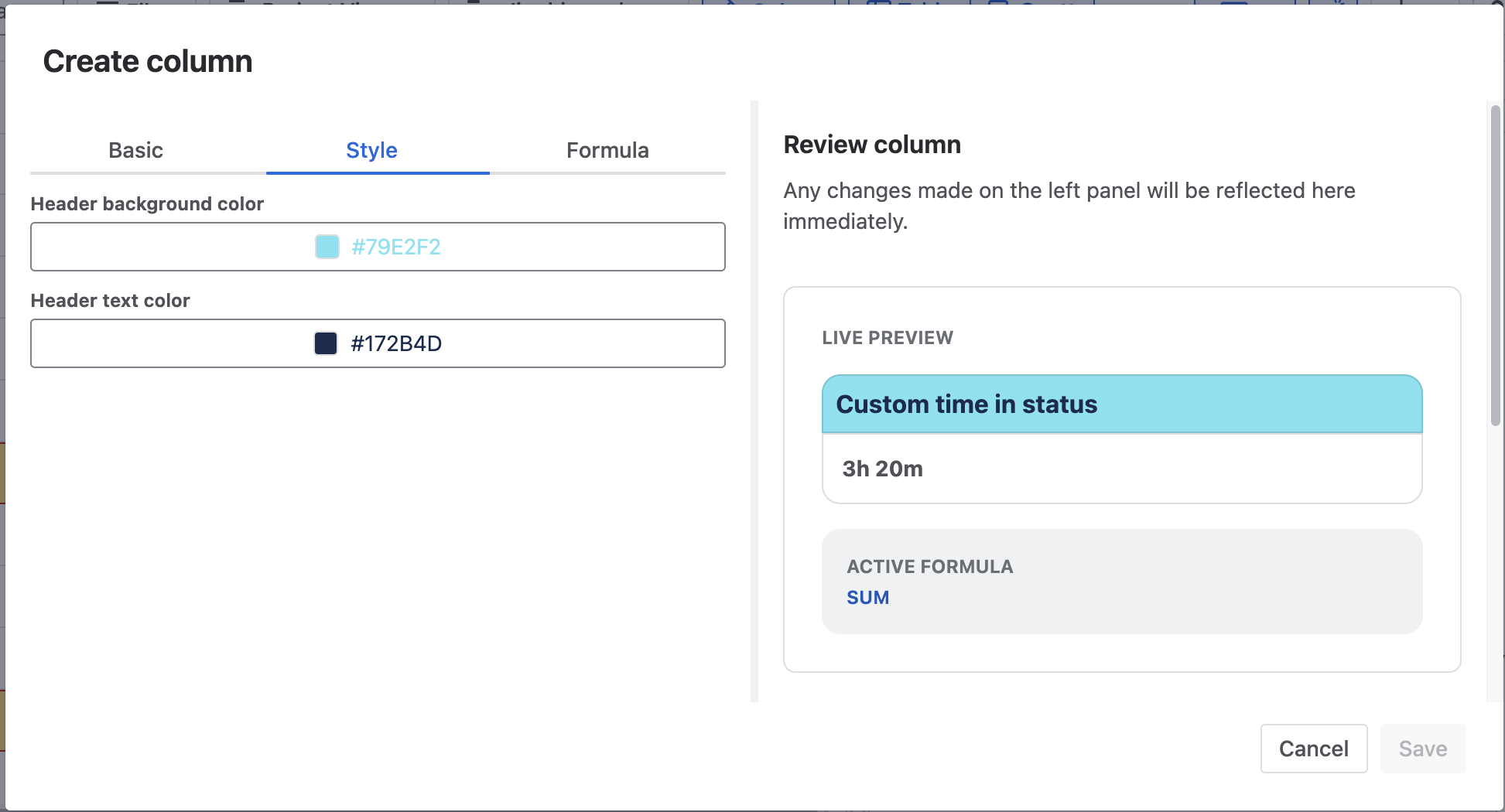 To create a smart column using a custom formula, please follow these steps: