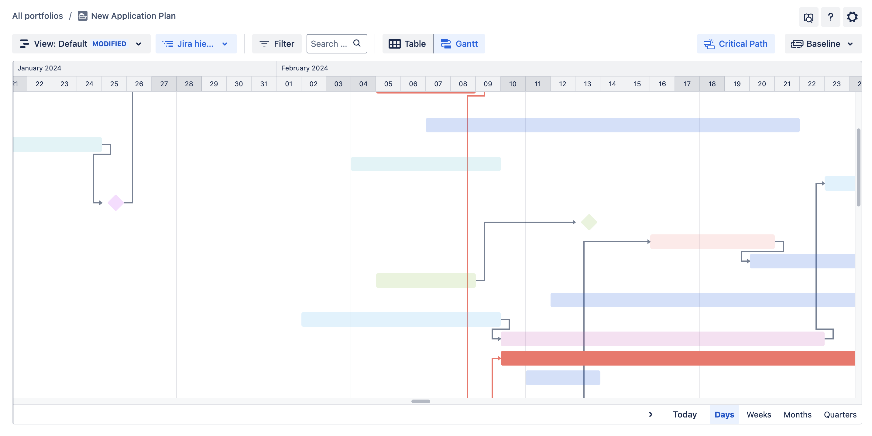 By default, both the Table and Gantt charts are enabled after creating a new portfolio. A Gantt chart is a project management tool that visually represents the timeline of a project, showing the start and end dates of various elements or tasks.