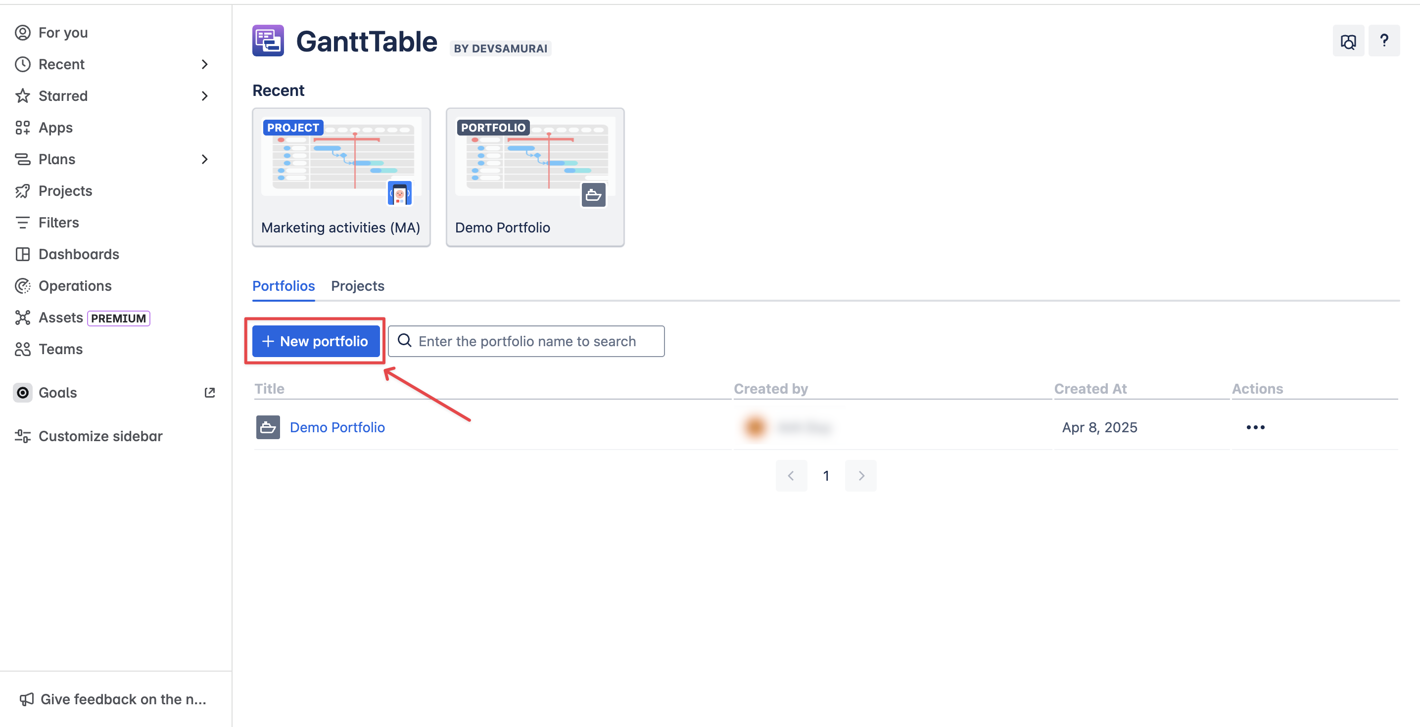 Then, fill in the portfolio’s Name → choose projects you want to add to this portfolio board.