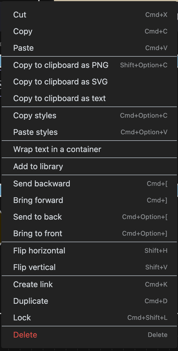 Export ImageOpen up the export menu to allow for exporting either the entire canvas or specific elements, such as selected items or elements inside a frame.