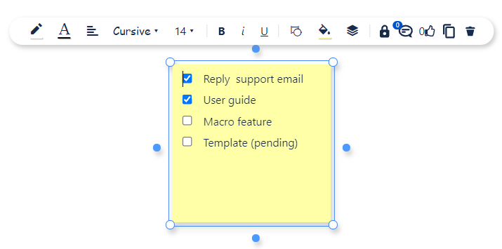 Along with these board items are various format tools for each type like changing color, flexible text size, change text alignment, etc. which will help you organize and express your ideas, meetings much easier.