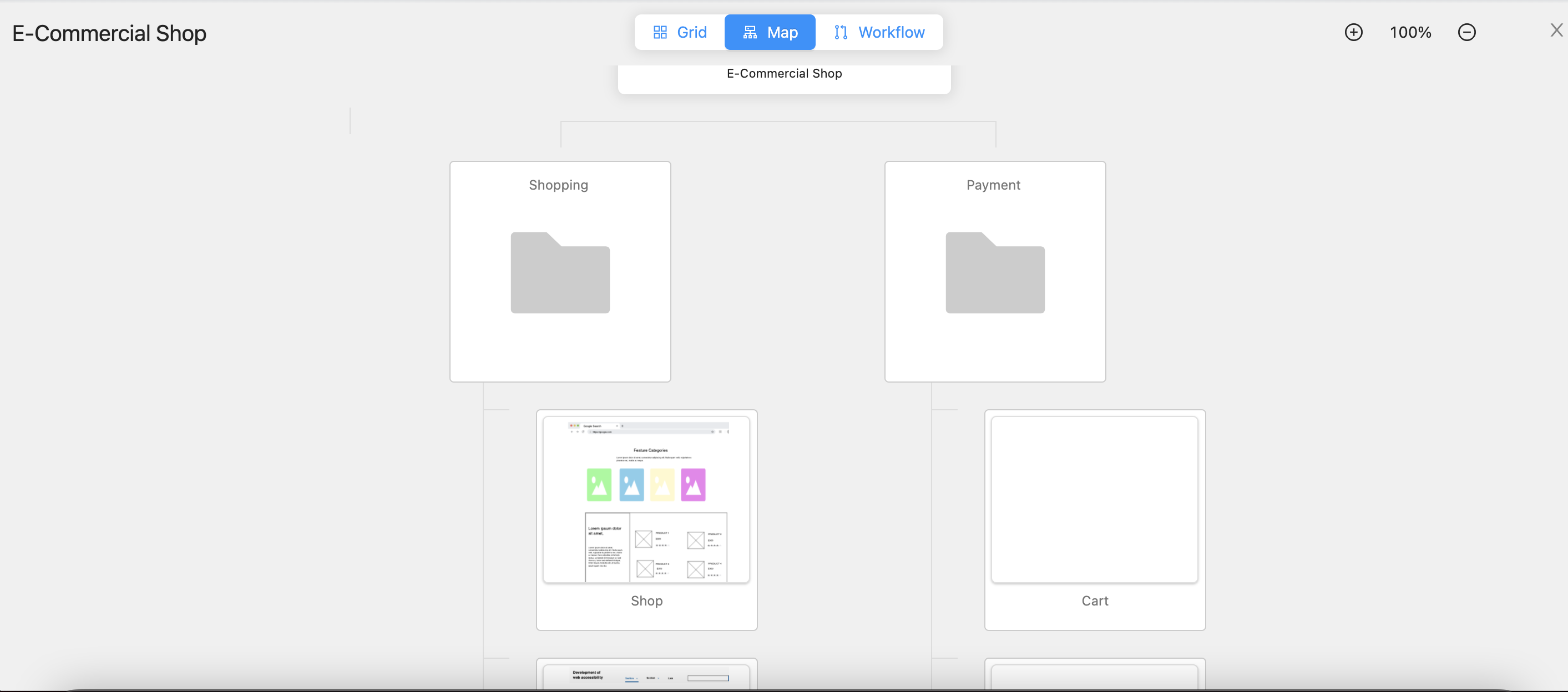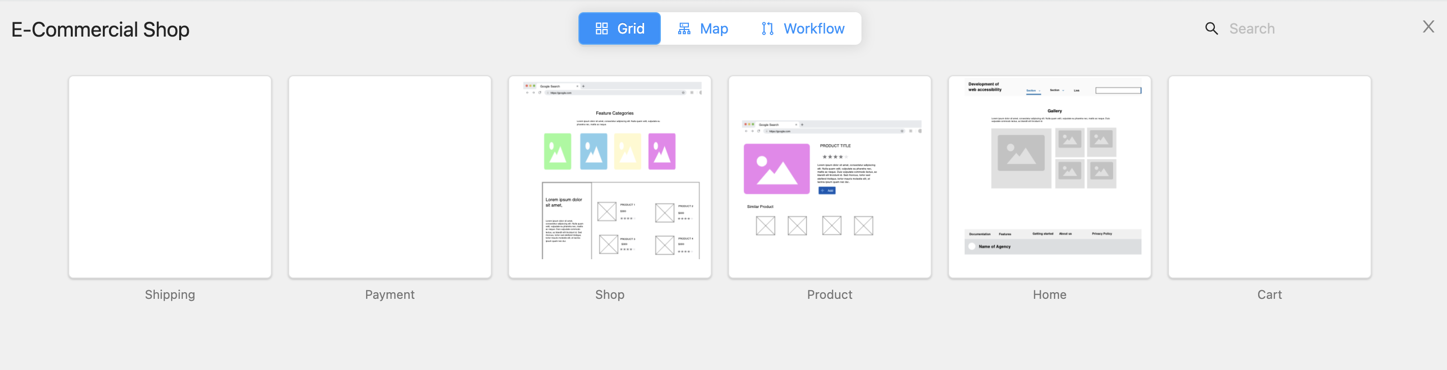 Manage your designs in hierarchical folders and pages with grid, map and workflow views