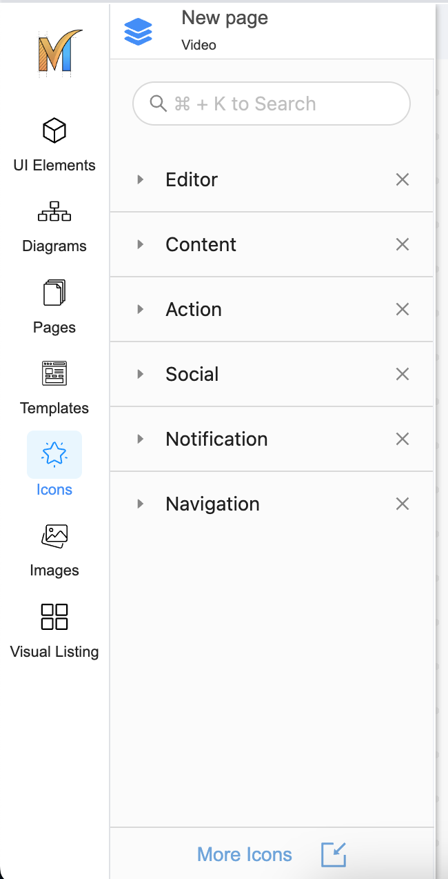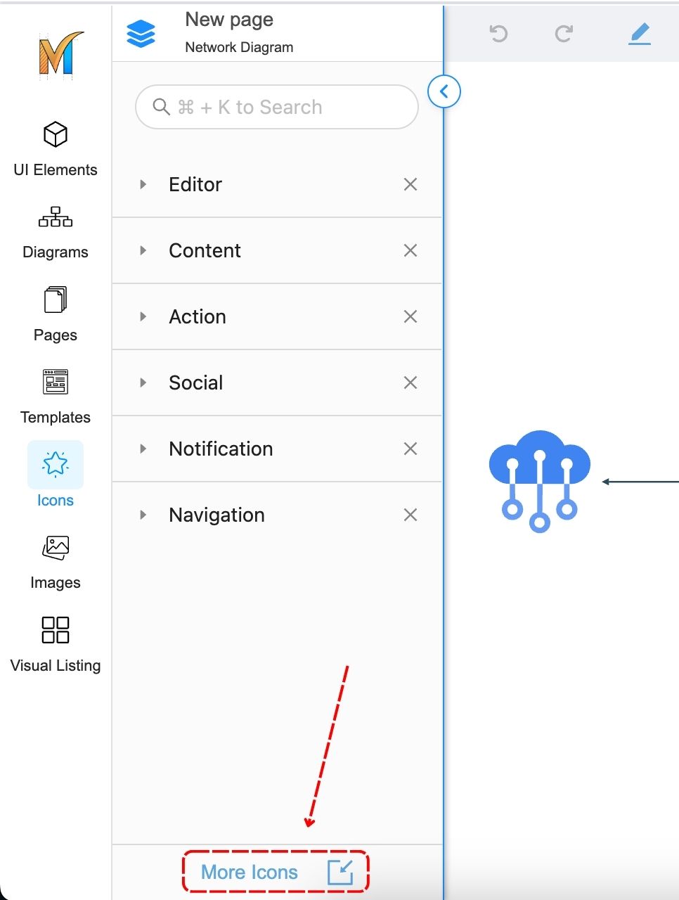 At the bottom of the icon menu, you will find the button saying “More Icons”. This feature lets you decide which icon pack to use in your design and keep your workspace clutter-free.