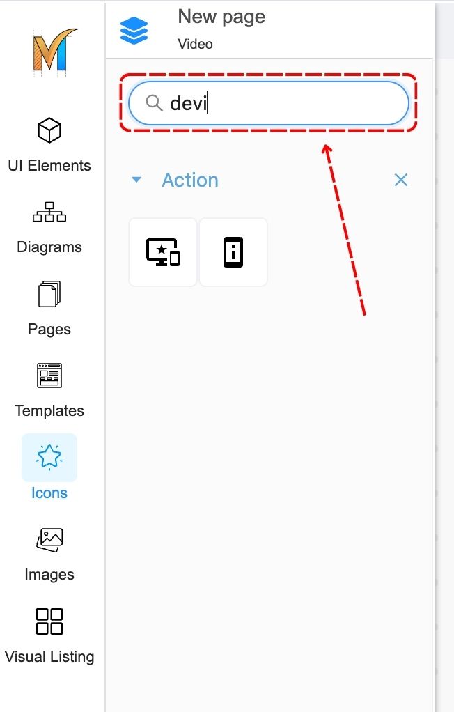To search icons, enter an icon name or a partial of the icon name. The matched results will displayed accordingly.