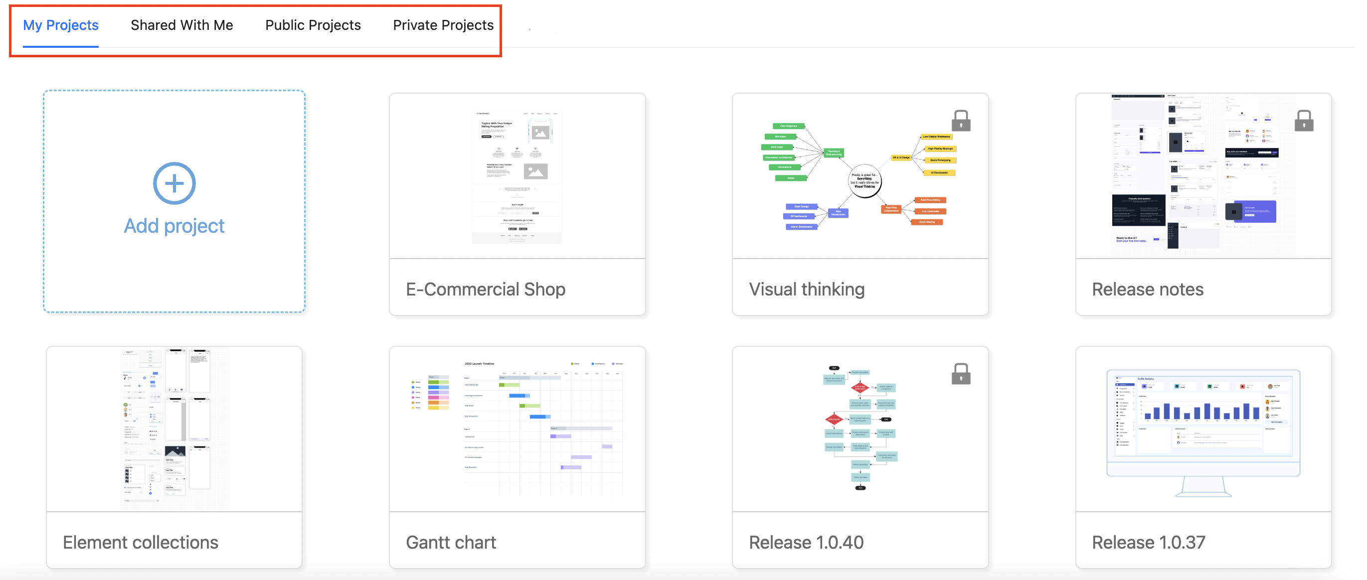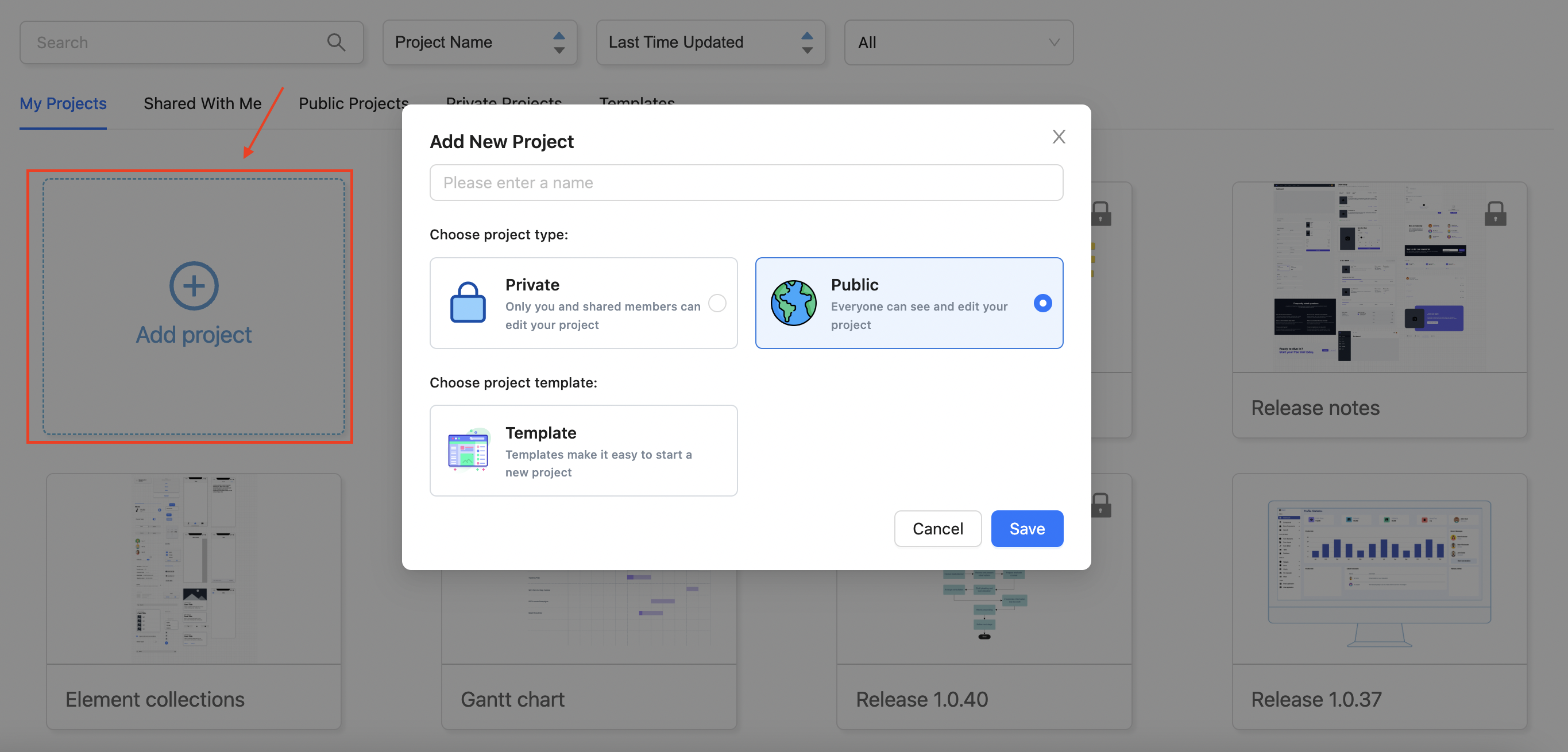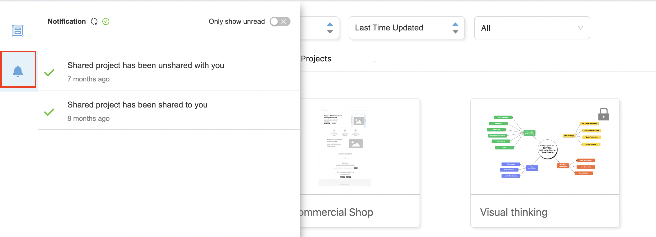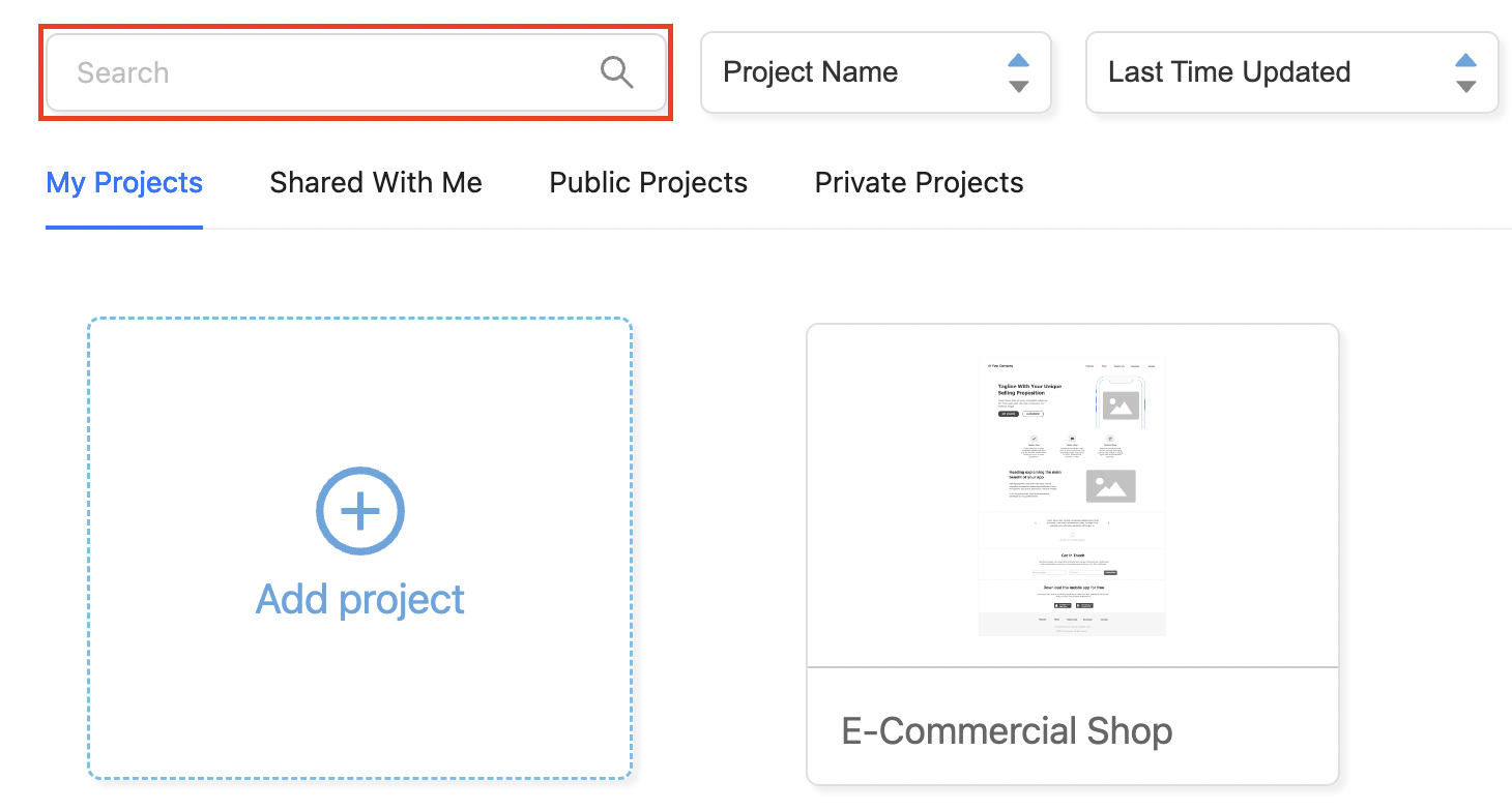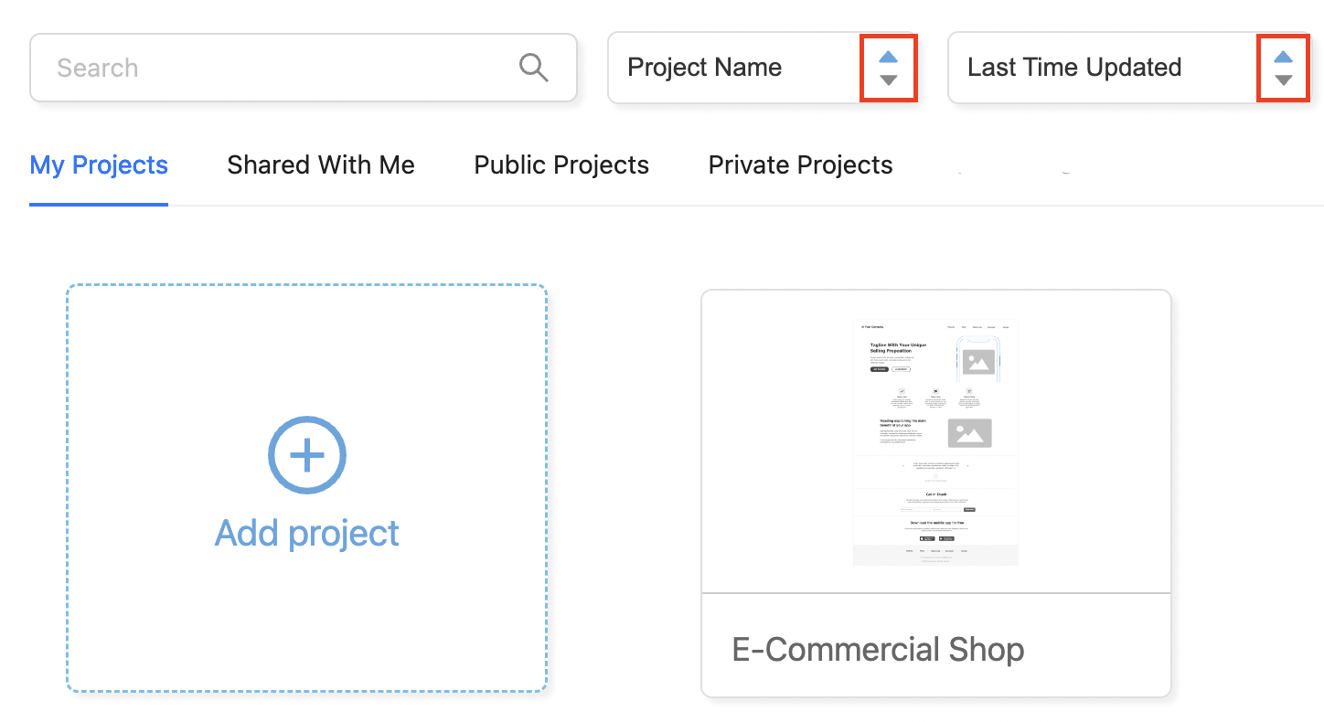 Sort by last time updated: Sort projects according to the newest or oldest updated.