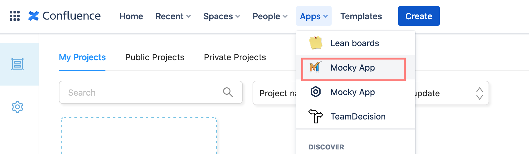 Mocky projects is the first-level management to start working with the tool. A project contains folders and pages.