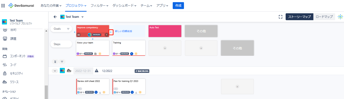 ユーザーストーリーマップのゴールカードに表示される詳細は以下の通り: