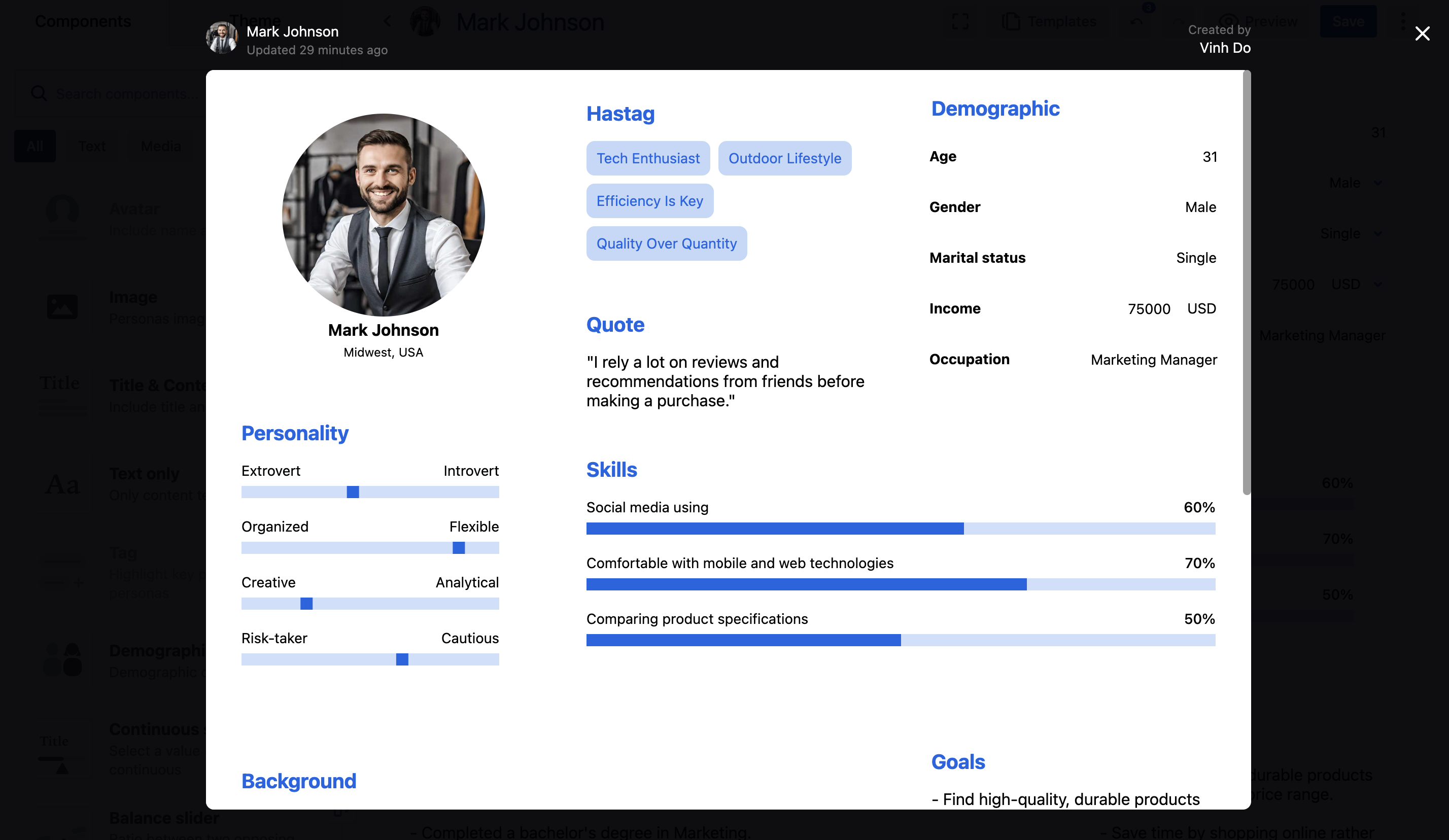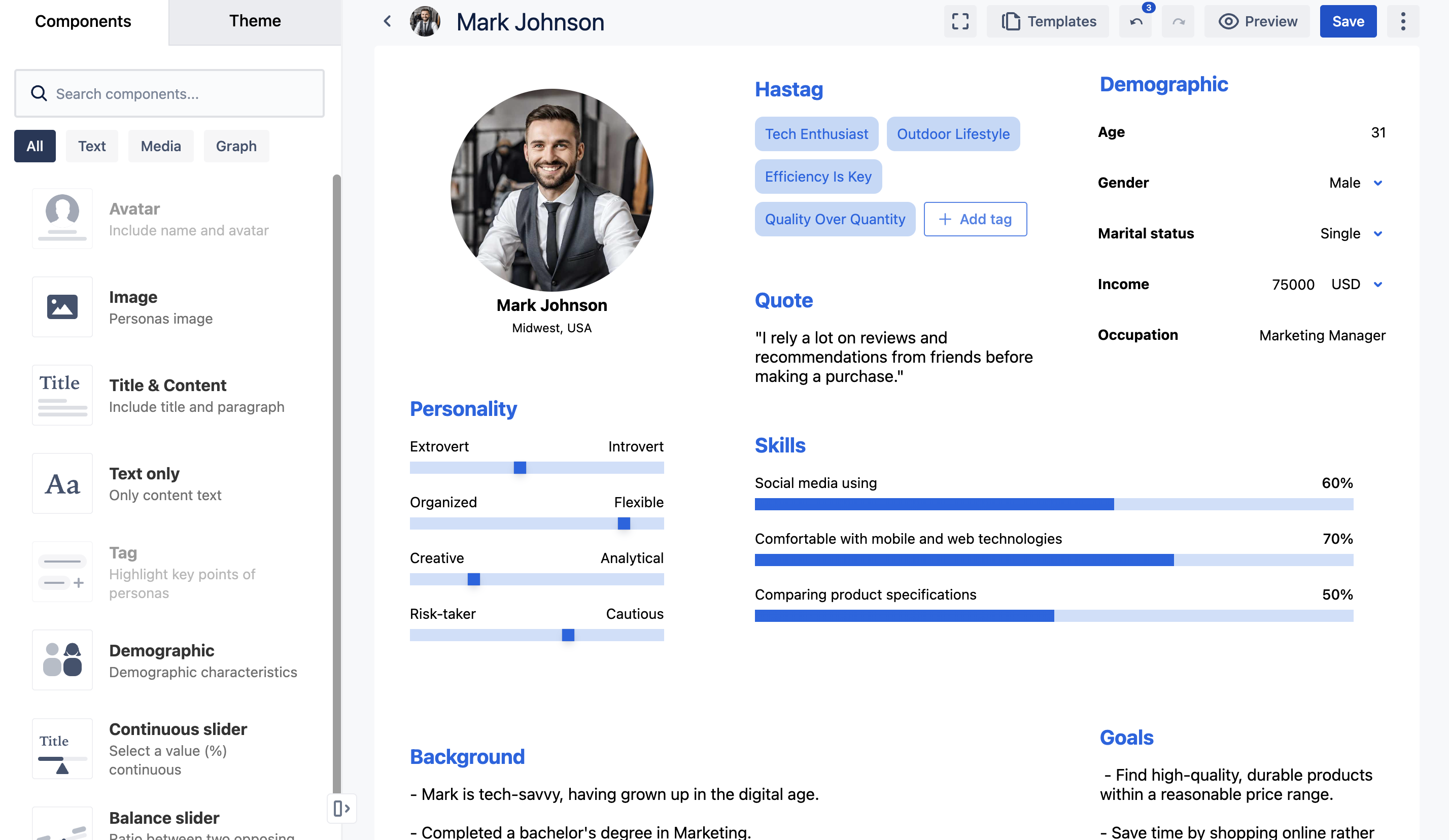 ユーザーはリストからペルソナをクリックして編集することができます。