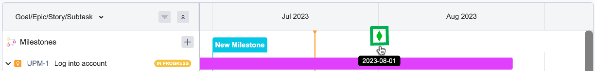 マイルストーンは、作成後、ドラッグ&ドロップ操作で、意図した日付に戻したり、進めたりすることができます。