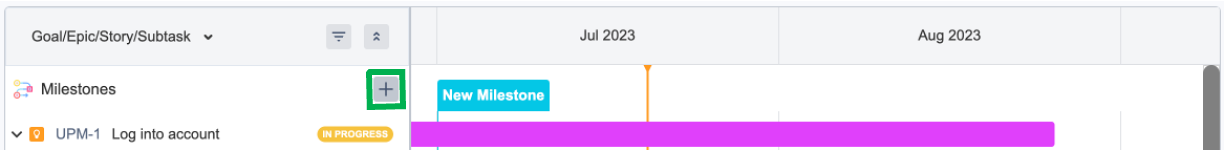 マイルストーン行の+ボタンをクリックします。