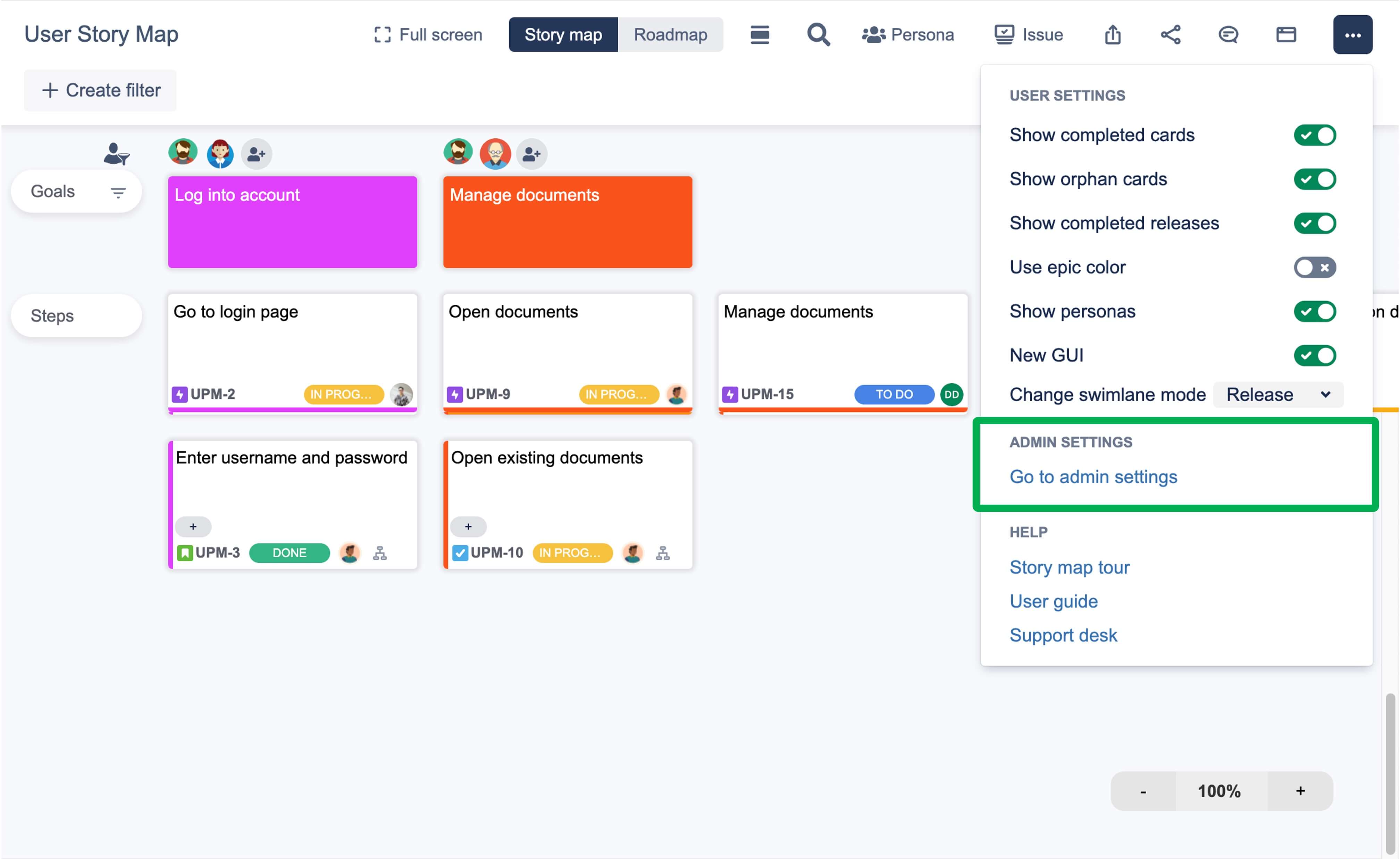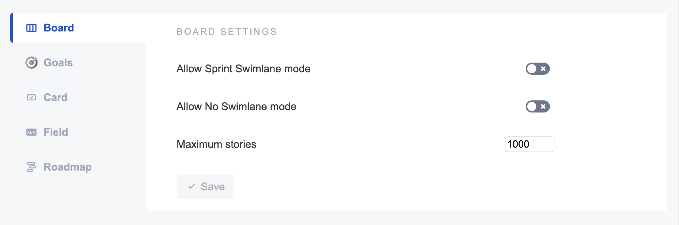 ボード/プロジェクトの管理設定には以下が含まれます。