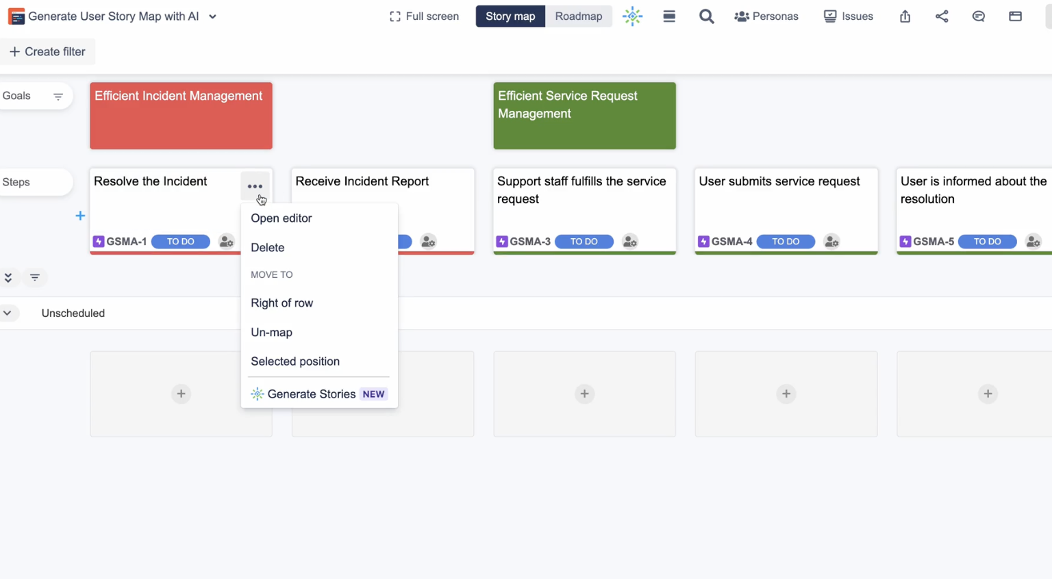 ステップメニューのGenerate Storiesオプションをクリックします。
