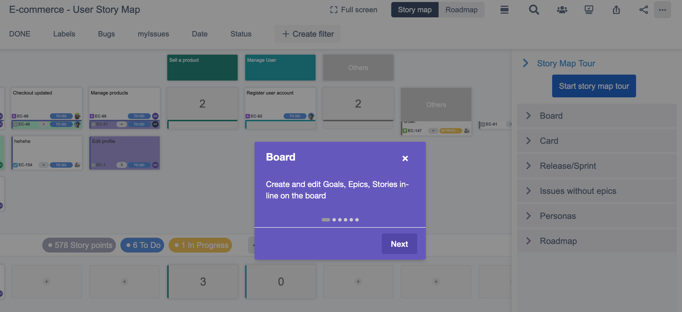 Roadmap view by Goal/Epic/Story a long with release/sprint views