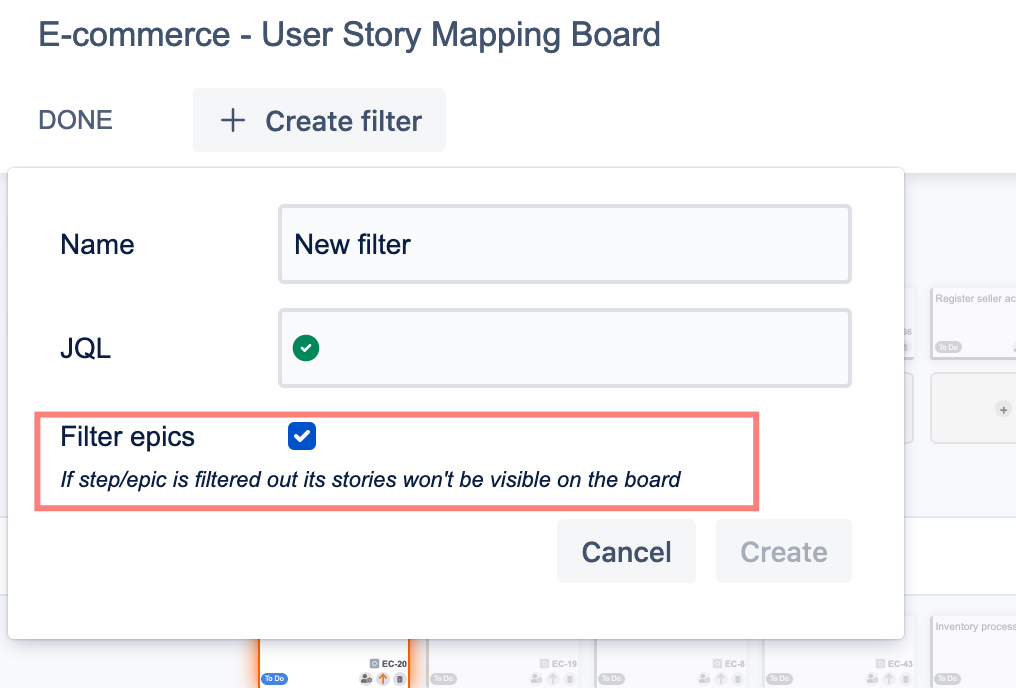 Option to filter epics also when creating quick filter