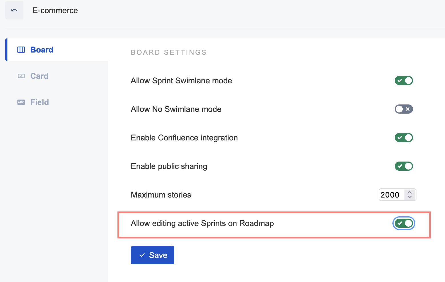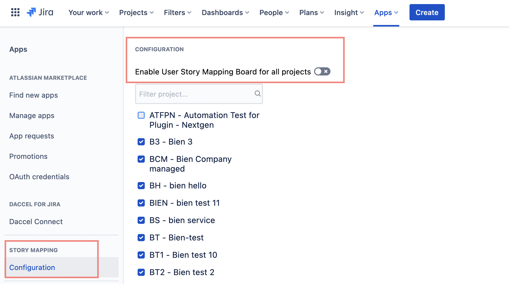 Enable and disable story map on specific projects: you can now choose which projects to allow users to use story map in Cloud edition