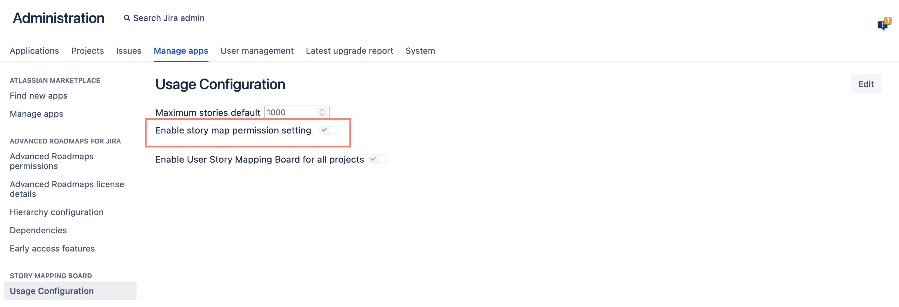 Permission settings: Board admin is now configurable for Agile board story map. The setting can be enable/disable in App setting, disable it if you want all Jira users have full permission on the board.
