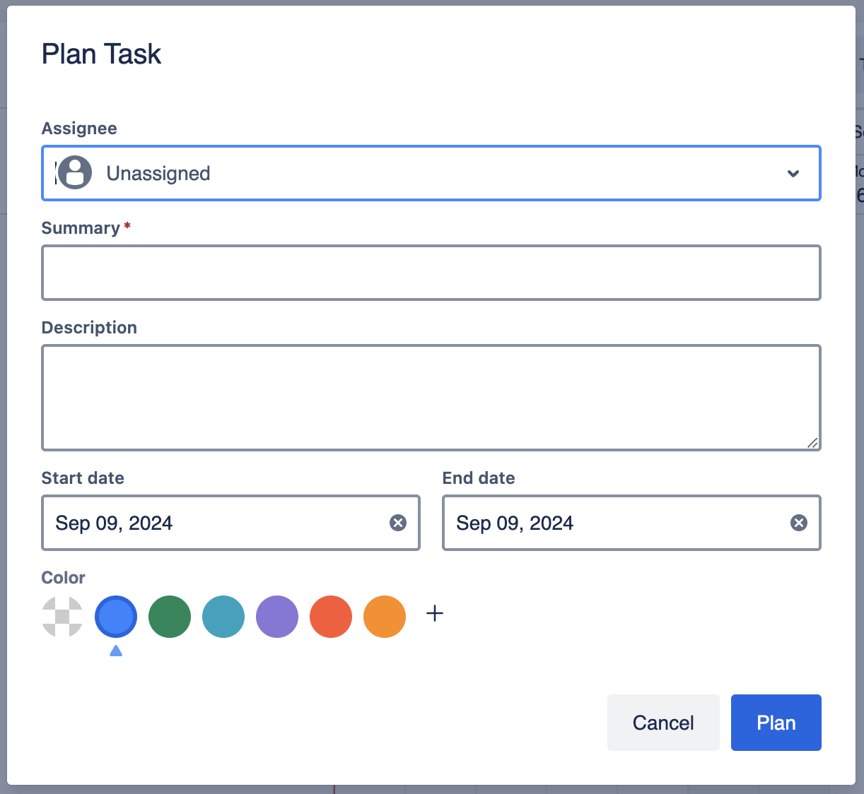 At this step, you can name this task, assign a member responsible for it, decide its duration, and select a color.