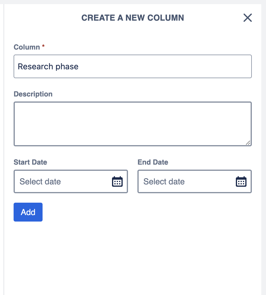 Here, you can add the column’s Name, Description, and even Start and End dates (if they are required in your project).