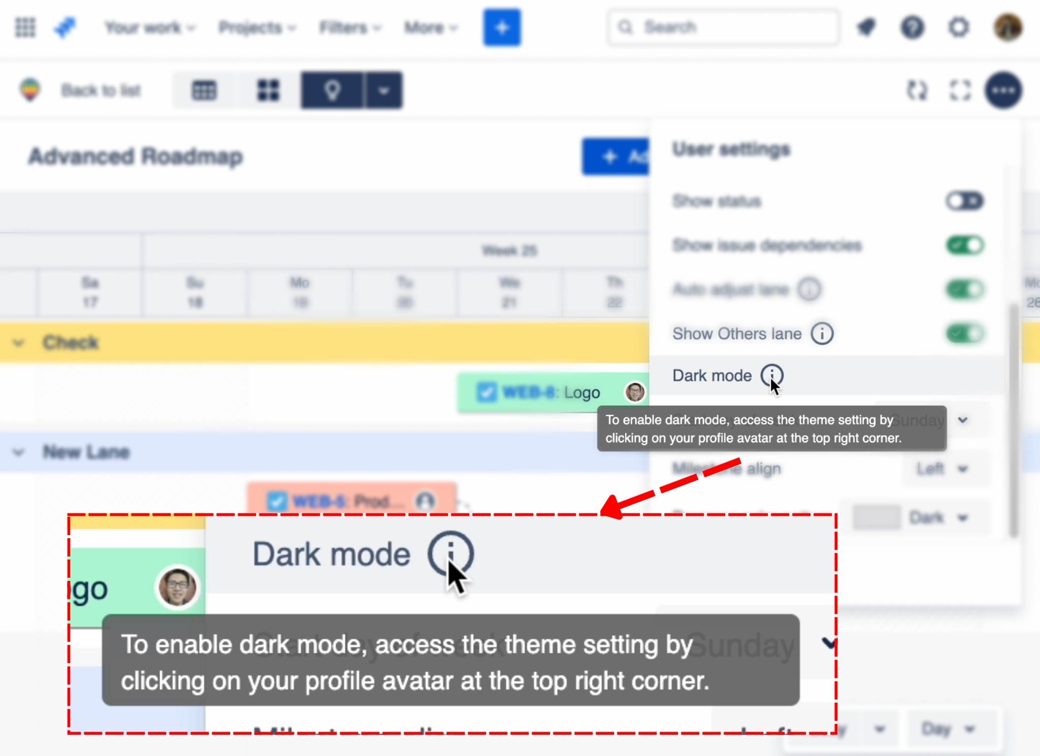 Display the isolated roadmap on the right panel of the issue detail dialog.
