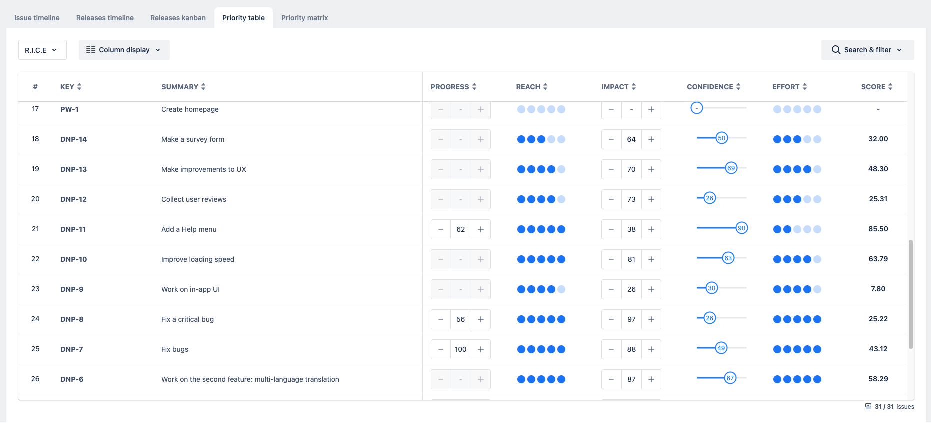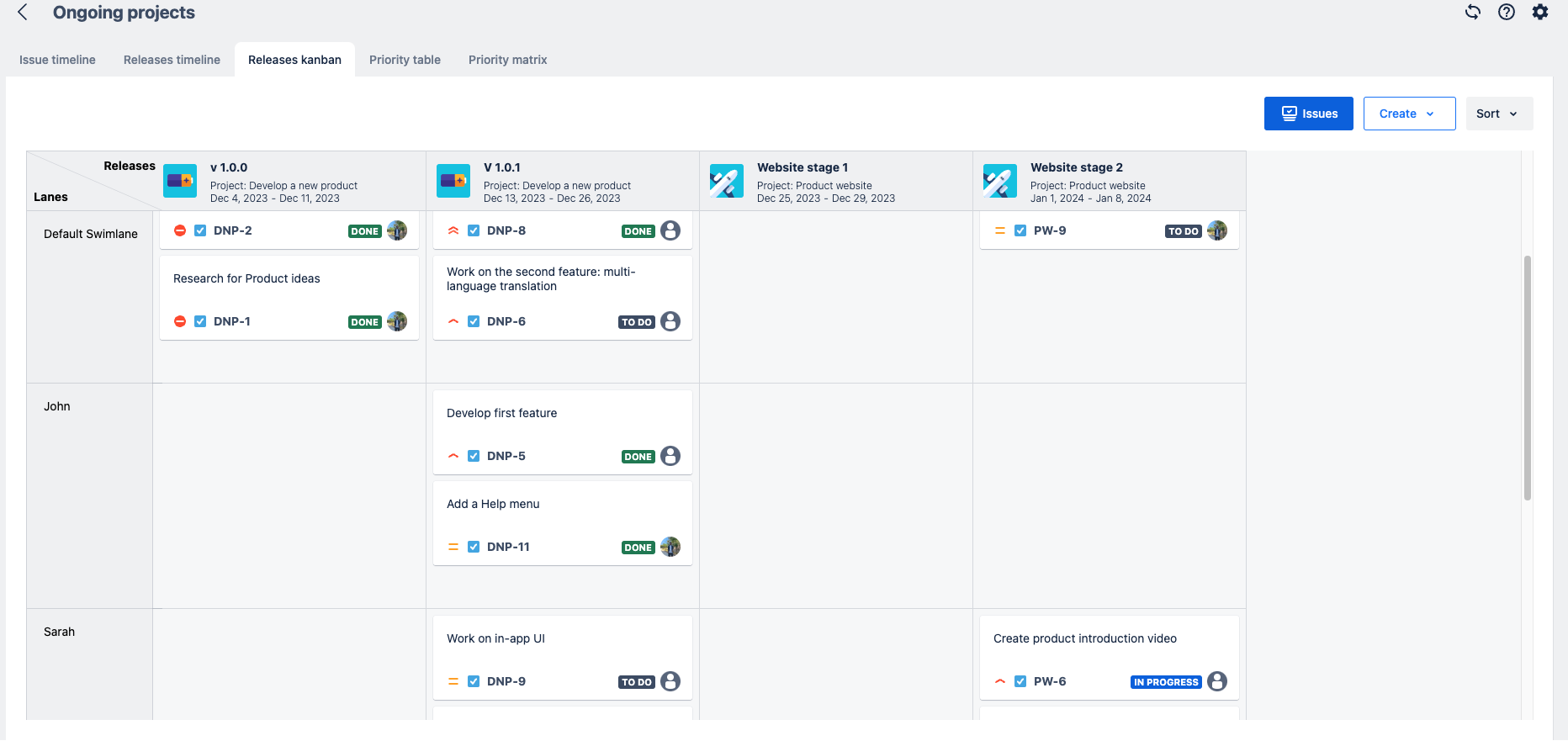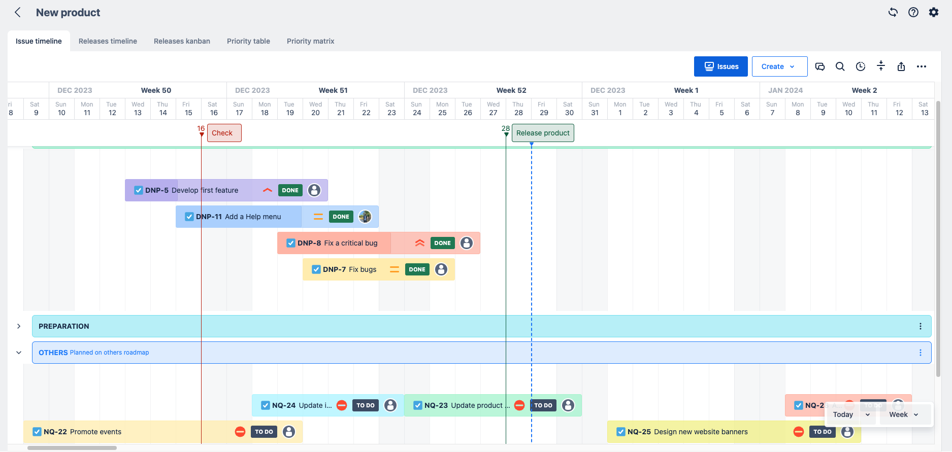 Now you can experience the Issue Timeline, Releases Timeline roadmap, Kanban boards, and Prioritization with more beautiful and modern looks.