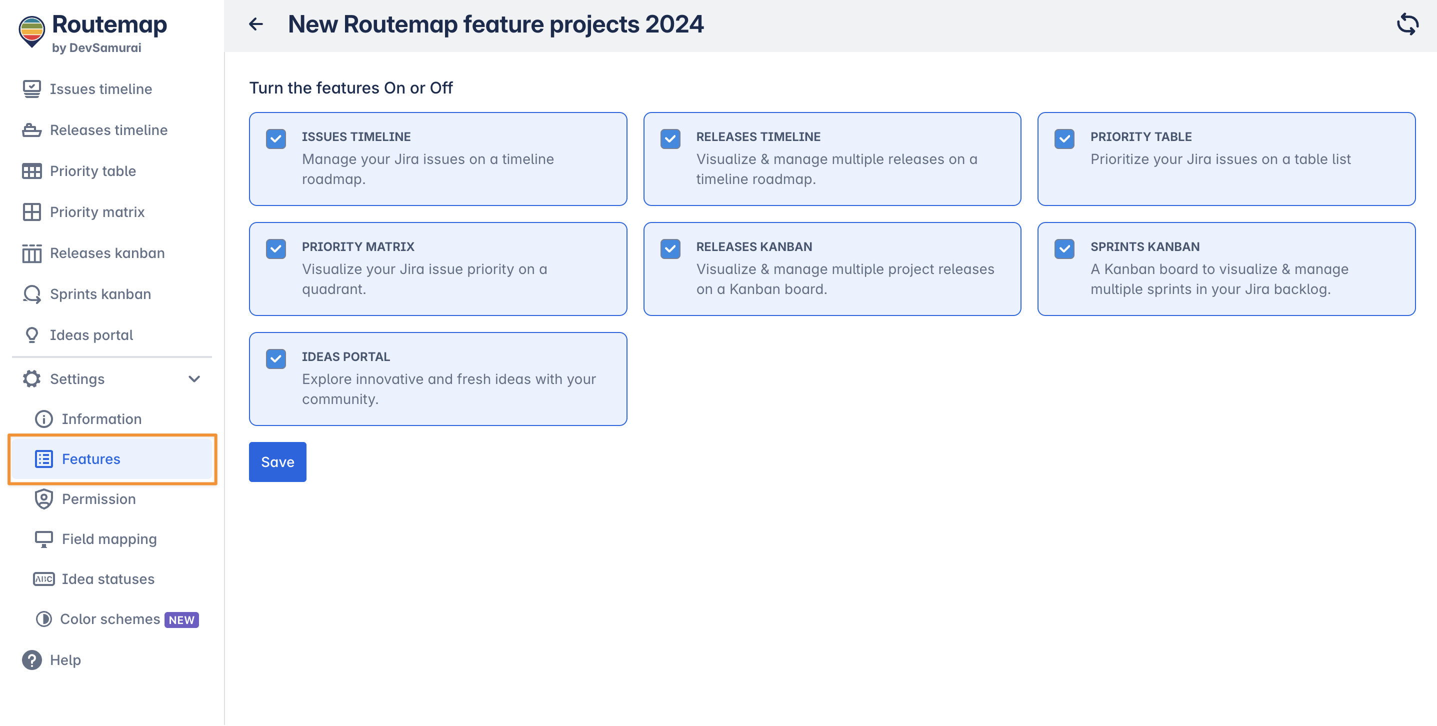 Projects: You can add or remove Jira projects in your instance from the current Routemap board.