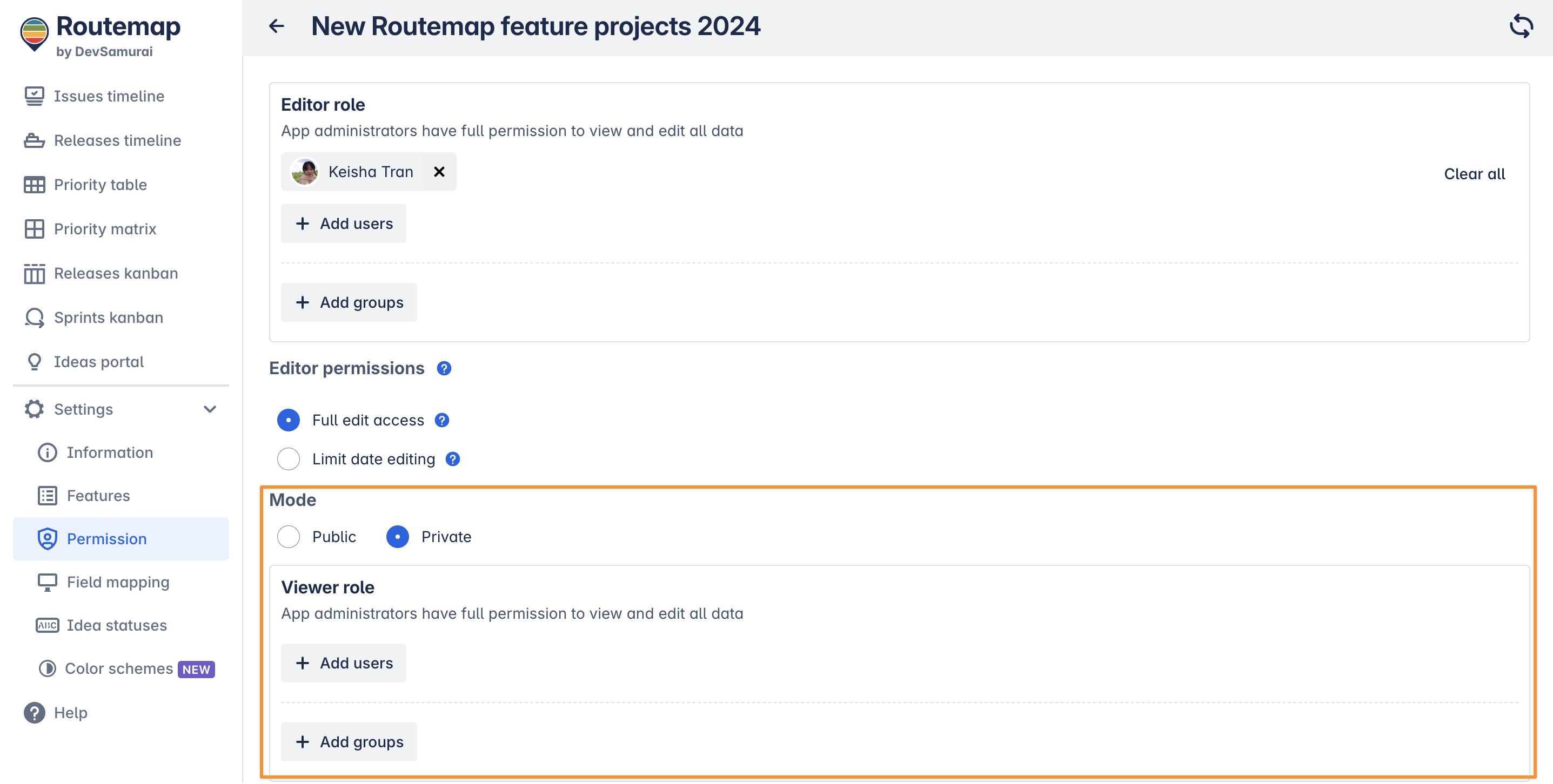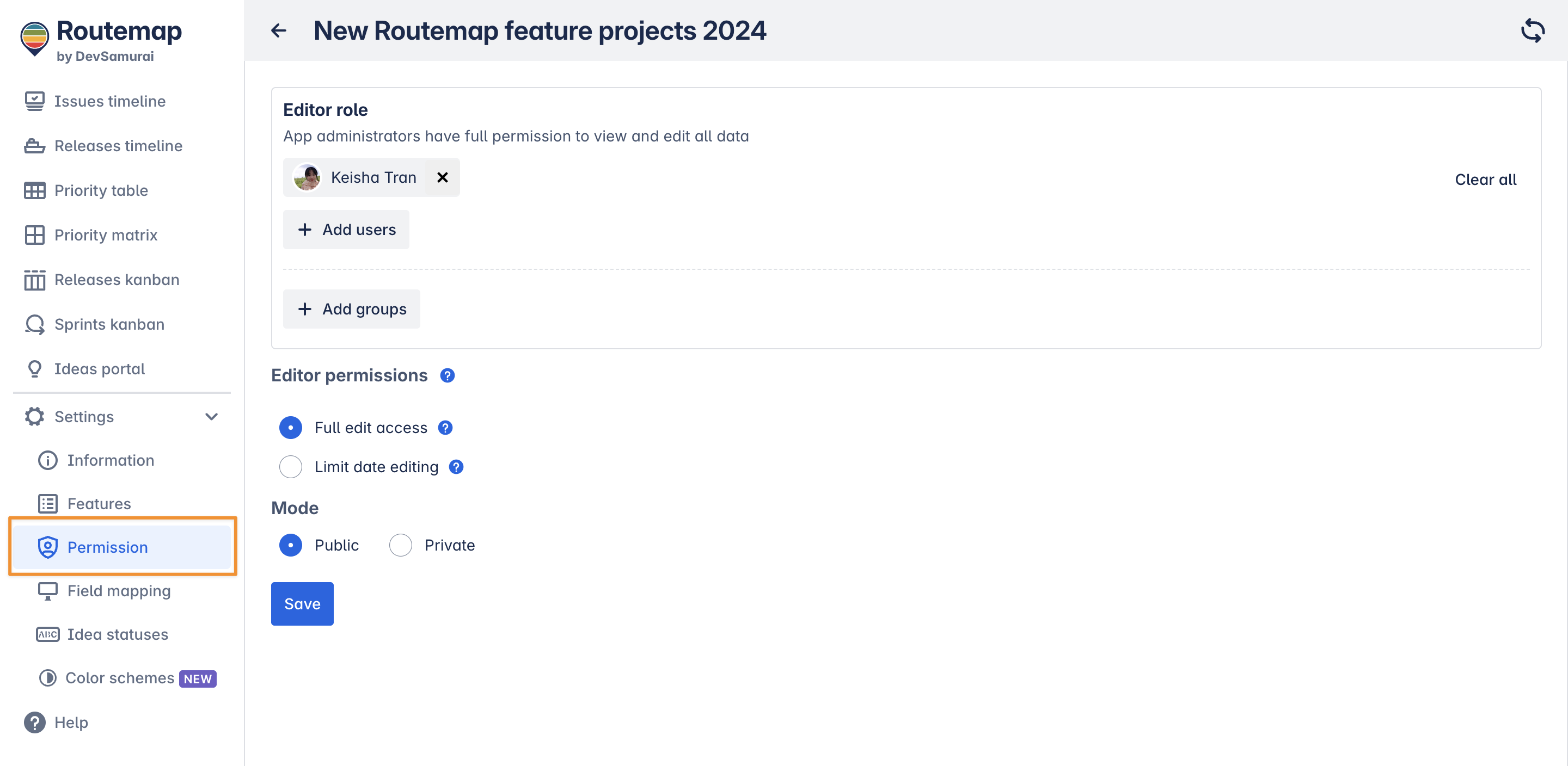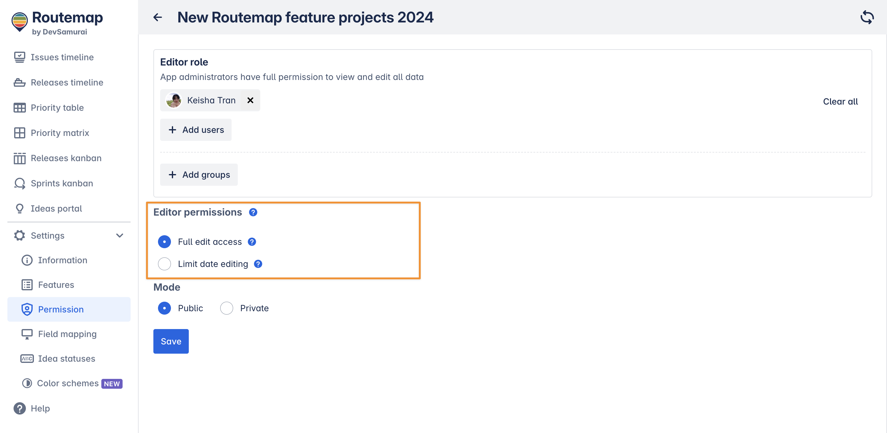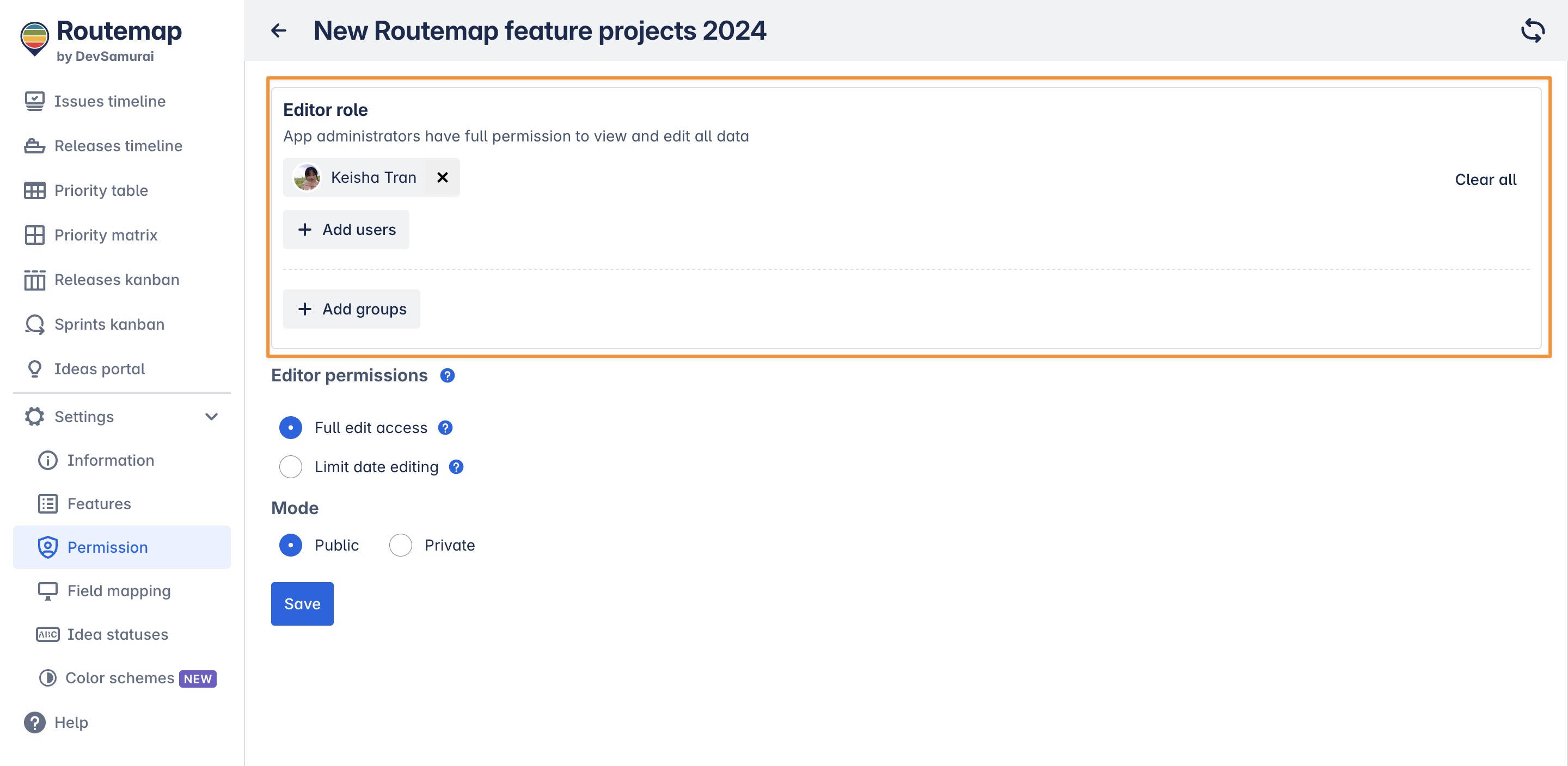 2. Editor permission (for Issue Timeline roadmaps)