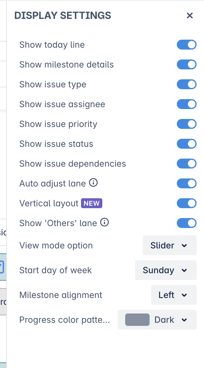 Progress color pattern: Let you choose between Light and Dark to visualize the progress pattern in your issues.