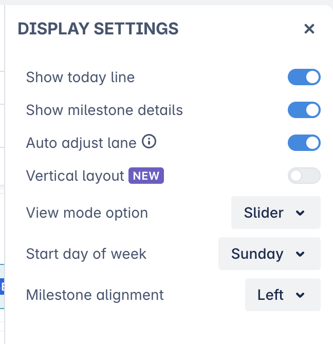 Now it is known as the Display Settings. These are the settings that allow users to customize how the roadmap renders.