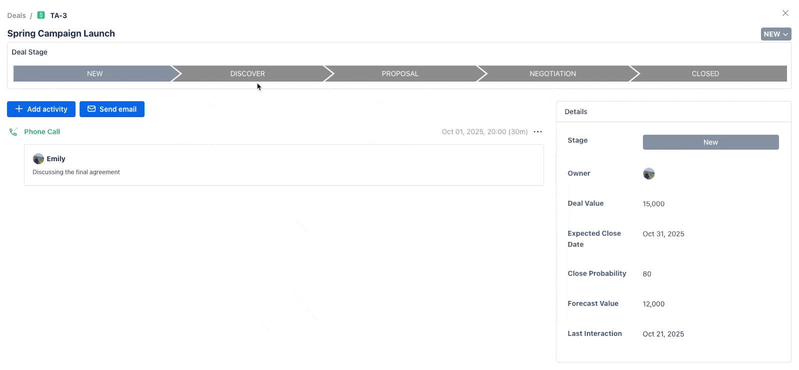 Typically, a deal will move through the following stages: