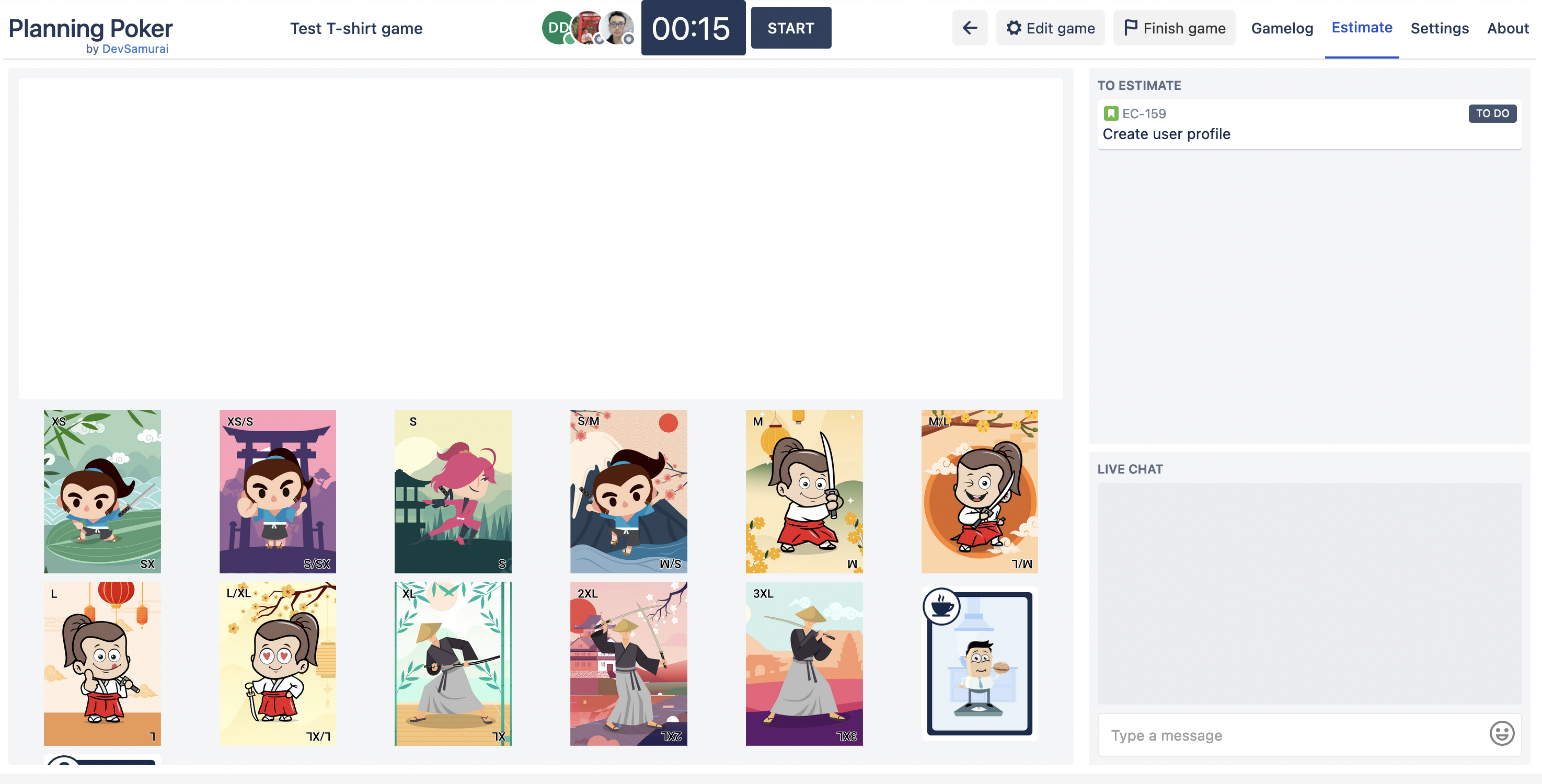 Support T-shirt size deck and custom deck: not only Fibonacci number you now can define the T-shirt size or custom decks to use in your game. More details