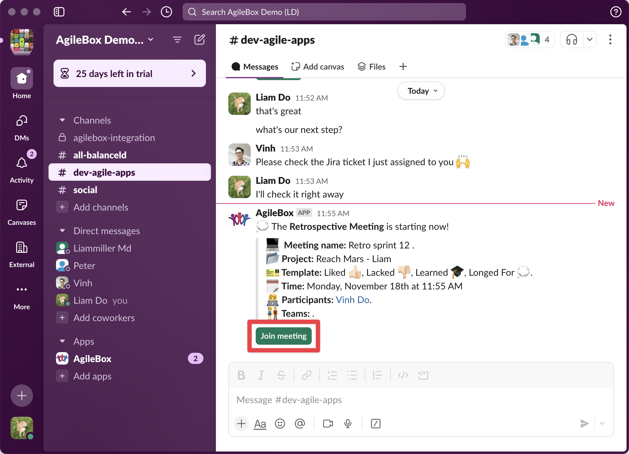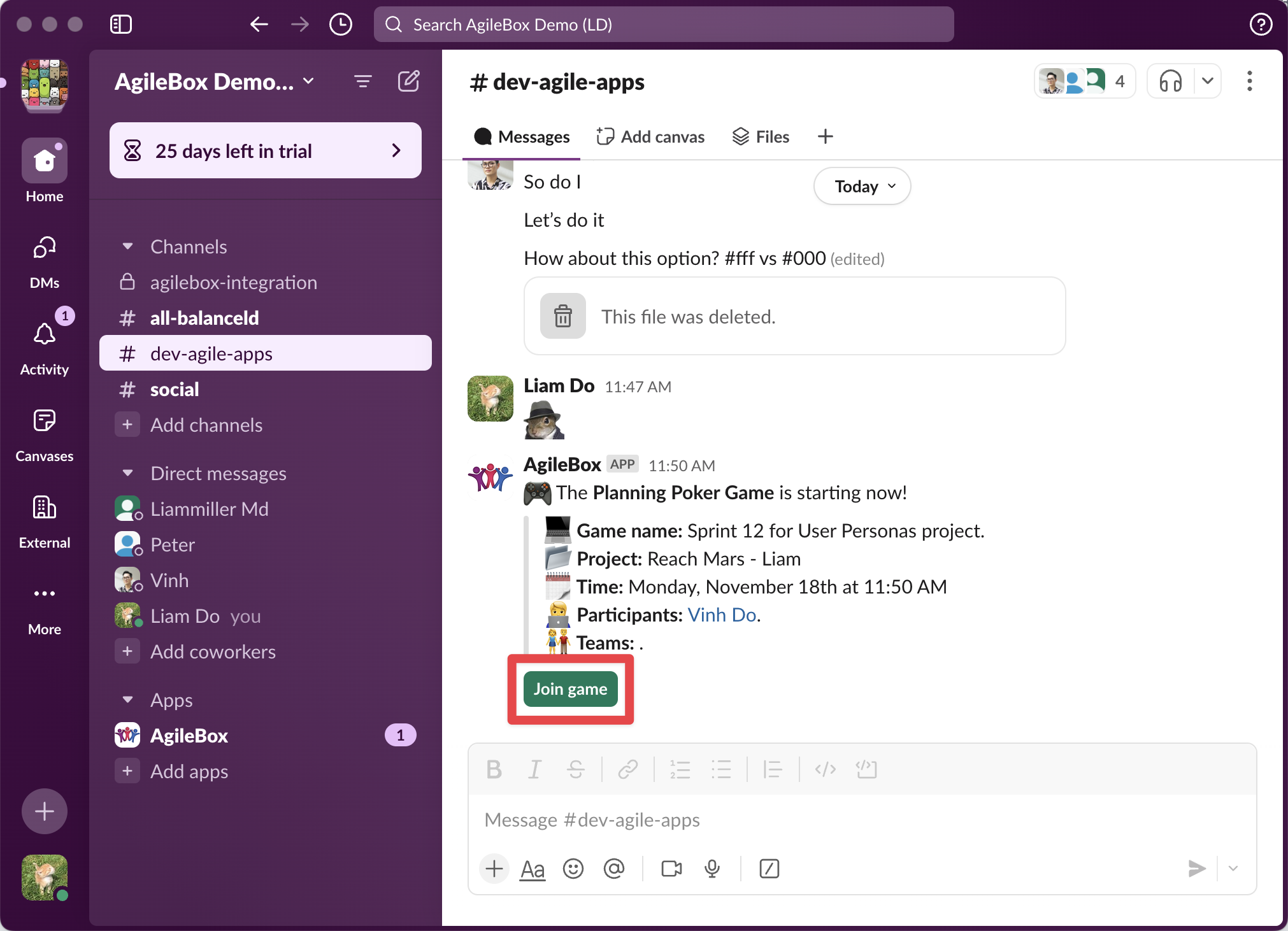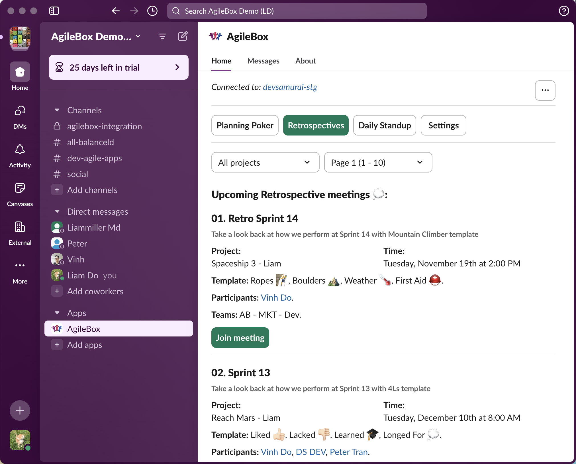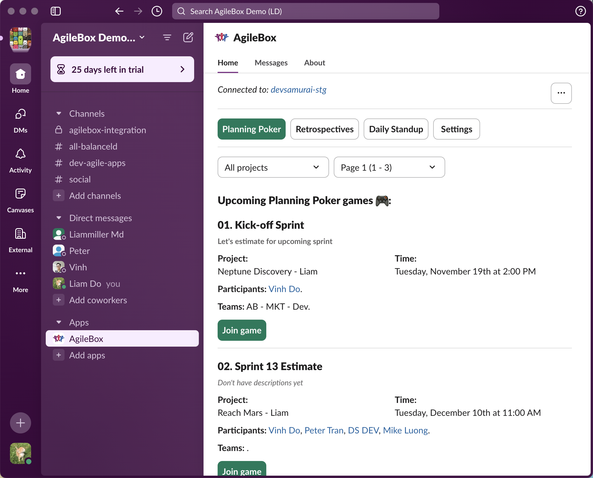 AgileBox for Slack is an integration that brings your AgileBox for Jira activities directly into your Slack workspace. This integration streamlines your Agile workflow by providing easy access to planning poker sessions, retrospective meetings, and daily standups right from Slack.