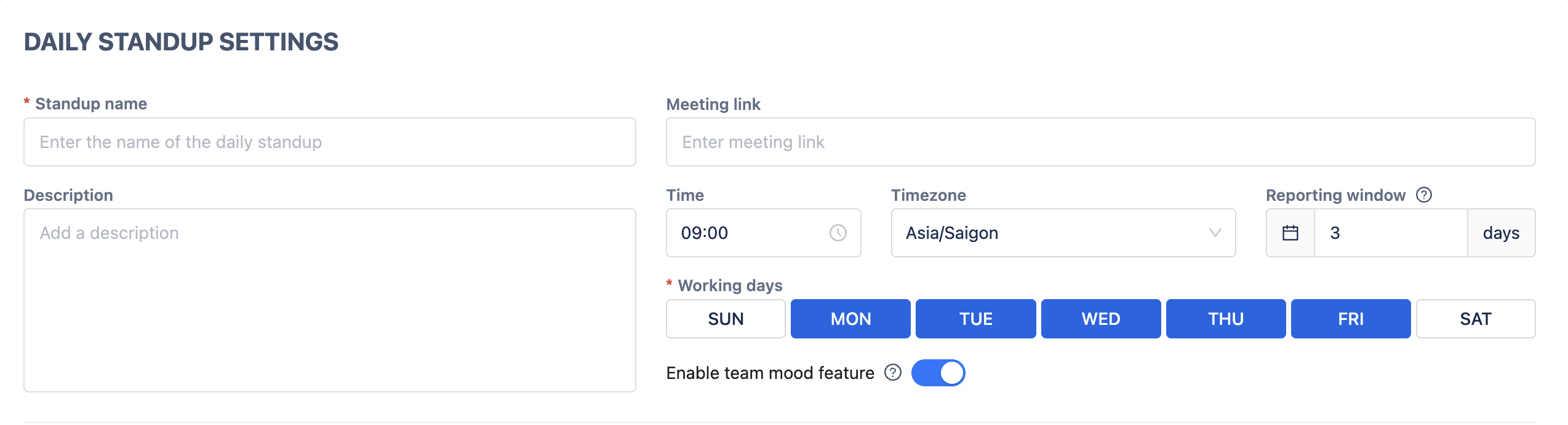 Enable Team Mood Feature: Toggle on to allow team members to share their mood with each daily report.