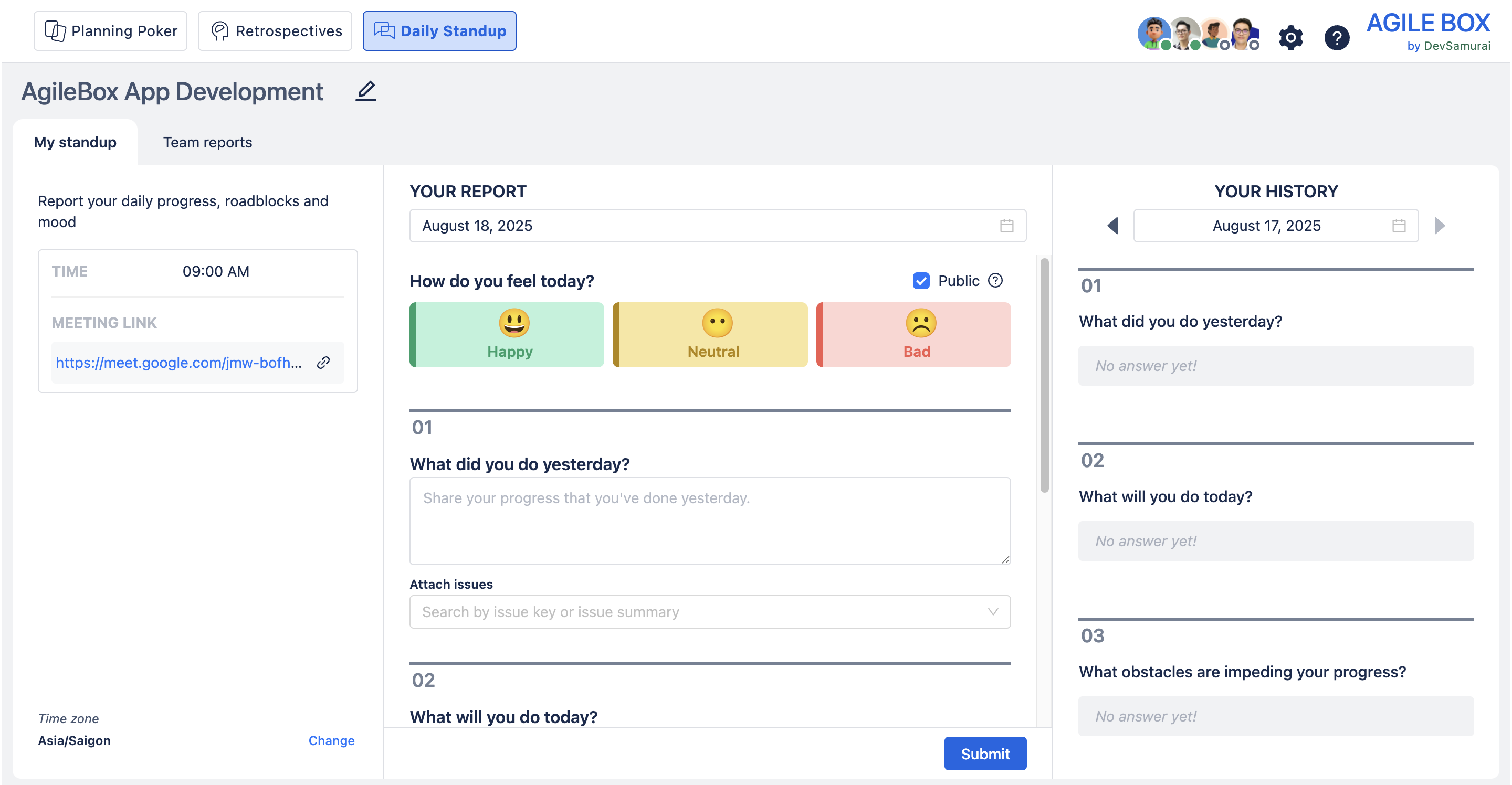 Creating a daily standup meeting