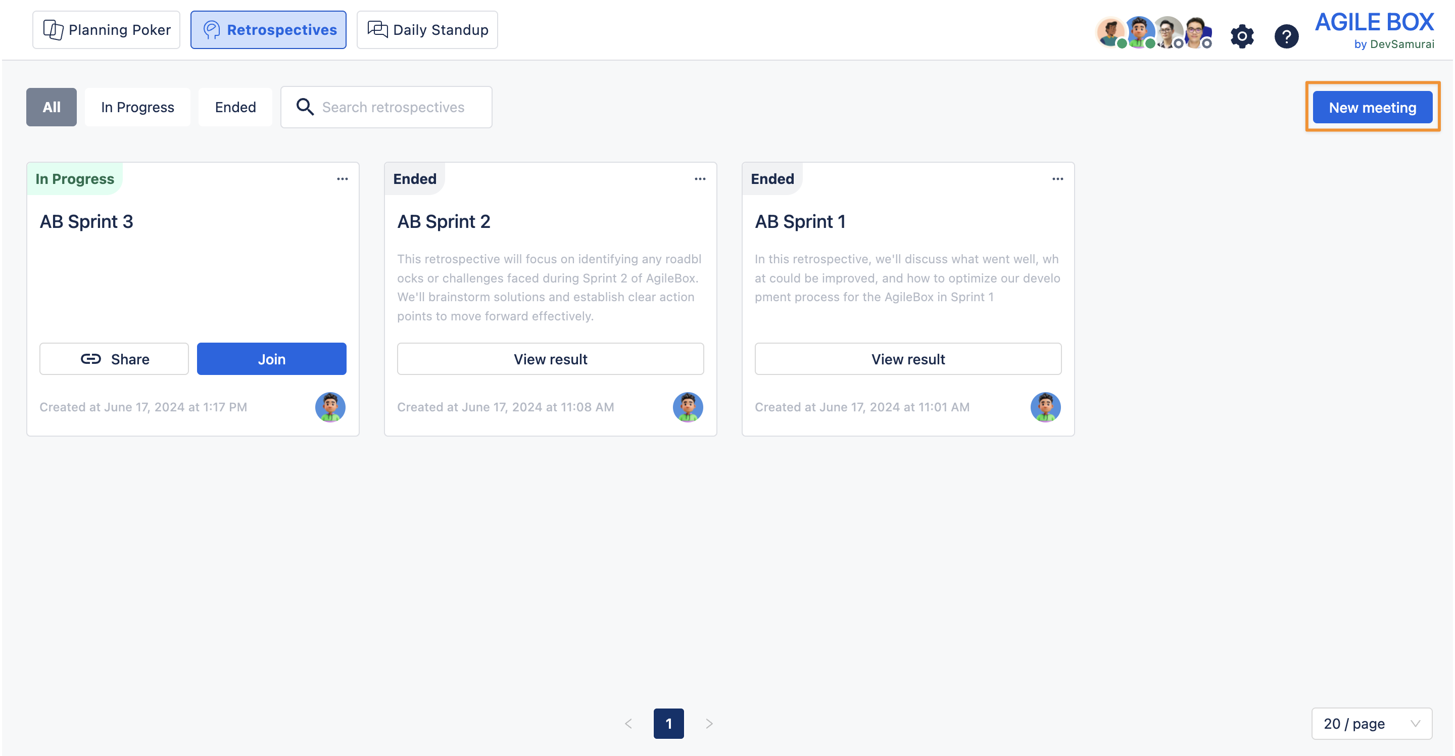 Learn how to create and manage retrospective meetings in AgileBox.