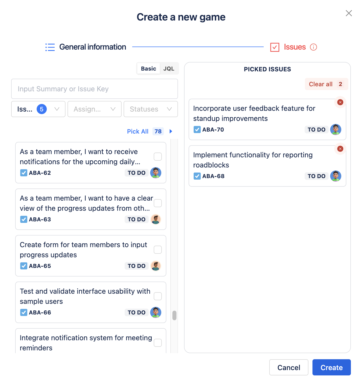Choose Pick All if you want to quickly move all filtered issues to the Picked Issues column.