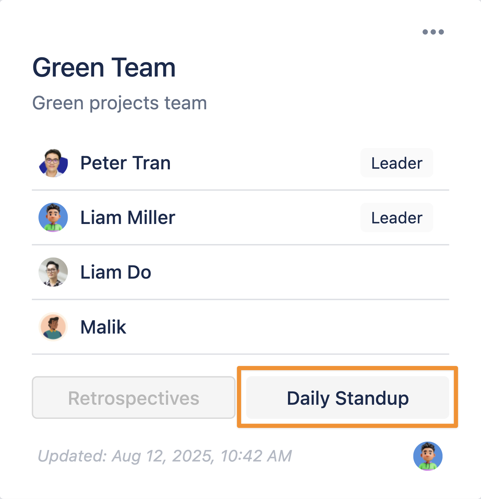 This feature enables the creation of dedicated Daily Standup sessions tailored to individual teams, offering a more focused and personalized experience compared to project-wide standups.