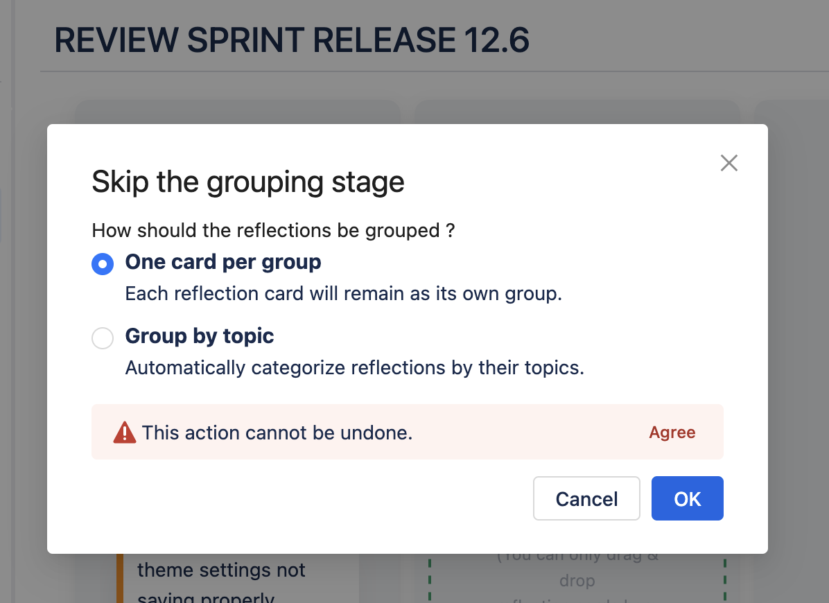 • One card per group: each reflection card will remain as its own group.