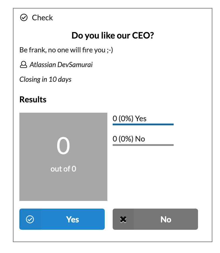 Details: short details of the Check, it will show up in the box but you can also create more content out side in the Confuence to support your idea