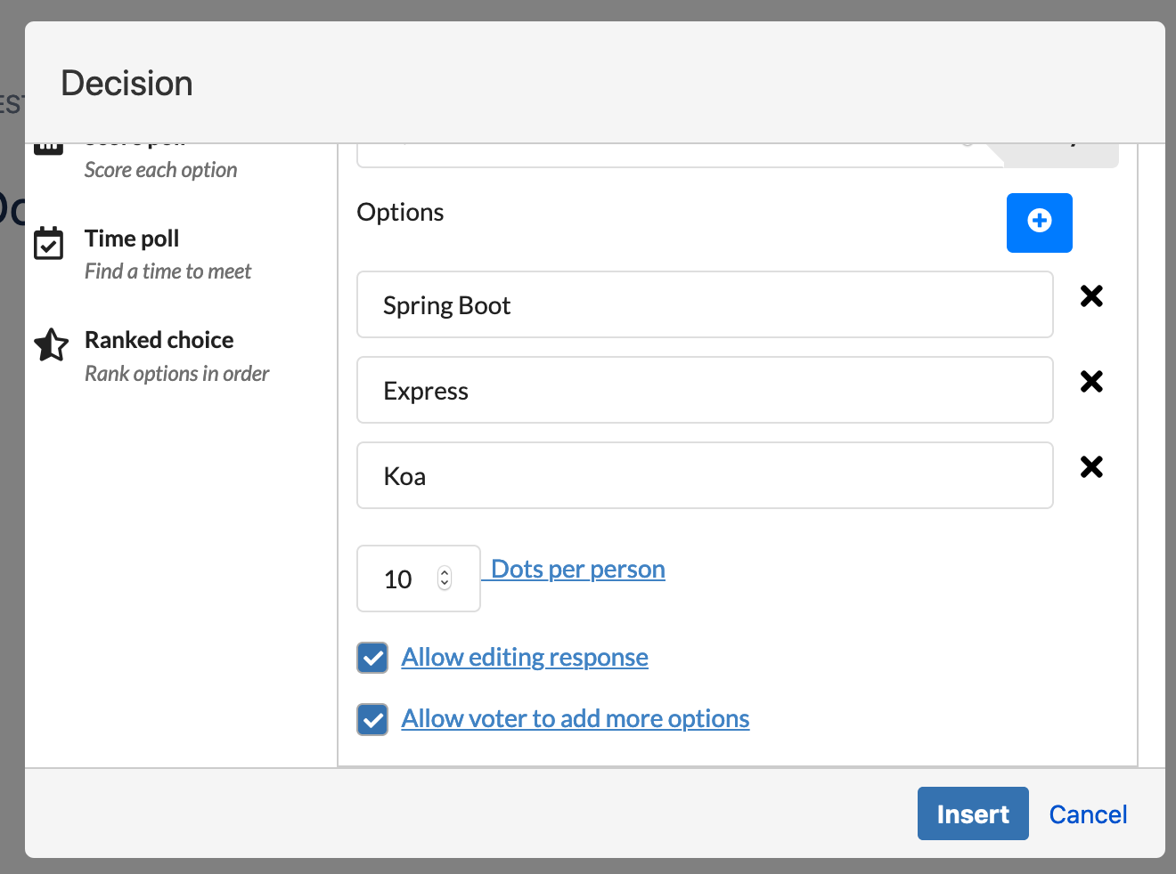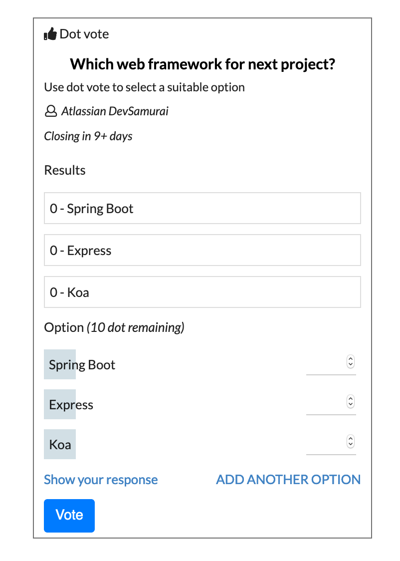 Options: Add options for your Dot vote