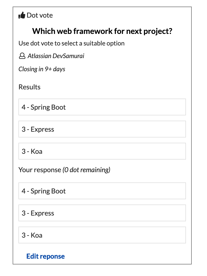 Details: short details of the dot vote, it will show up in the box but you can also create more content out side in the Confuence to support your idea