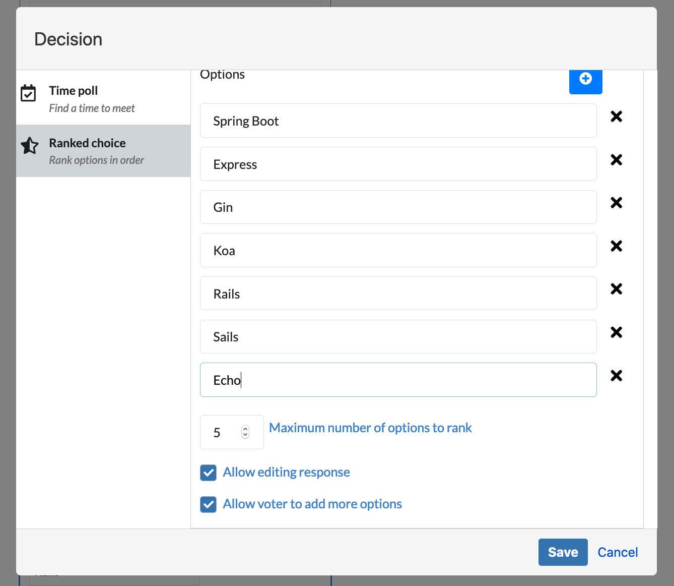 Maximum number of options to rank: The maximum options you can vote