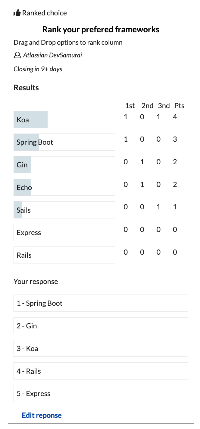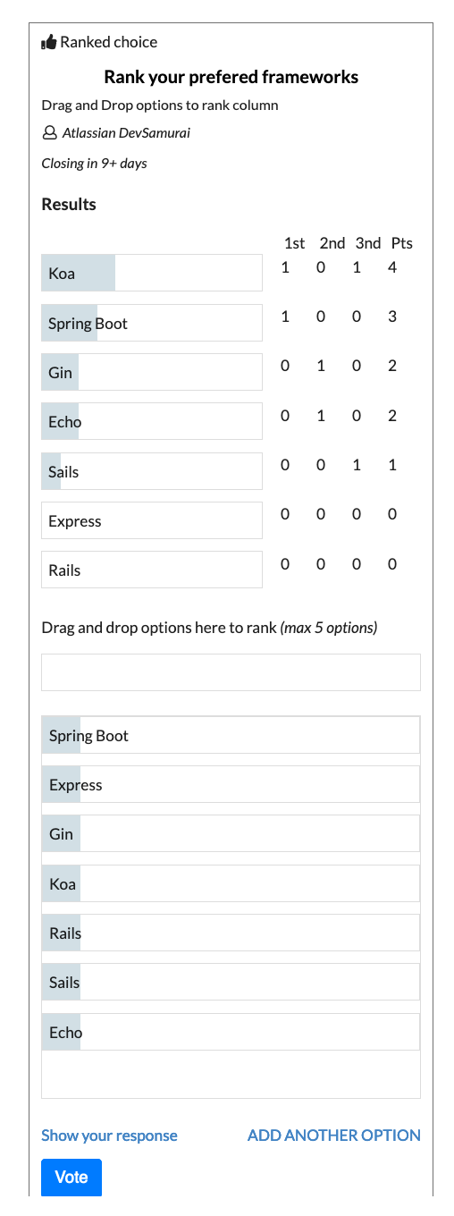 Details: short details of the poll, it will show up in the box but you can also create more content out side in the Confuence to support your idea