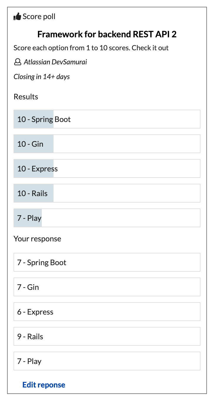 Score polls allow people to express their degree of preference for each option.