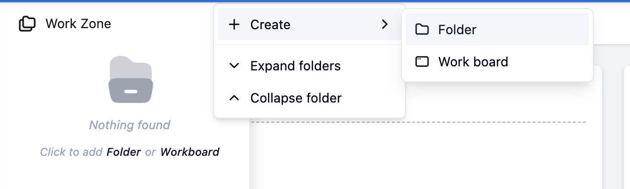 On Work Zone, click on the three-dot icon, and select Create > Folder