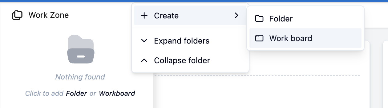Work Zone is your ultimate workspace for organizing and managing your workboards and tasks efficiently. This tool empowers you to create, edit, and delete boards and folders, helping you streamline your workload and maintain organization.
