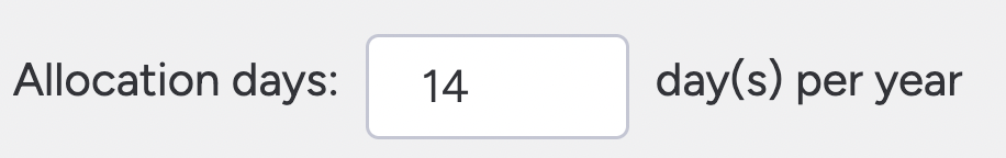 Example: If all employees are given 14 days of annual leave per year, entering “14” here will automatically allocate those days.